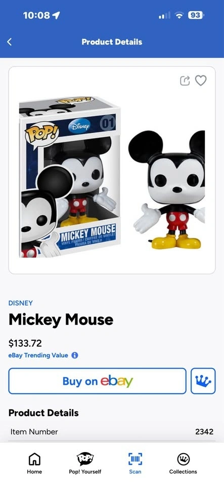 Buy & SellMickey Mouse Funko PopMickey Mouse Funko Pop$100Mickey Mouse Funko Pop, originally worth $130, asking $100. Comes in a protective cover.WHERE TO MEETCheck LocationView MapSELLERTrevorLincoln100 reviews0 chats·0 favorites·1 viewsSEND CHAT TO SELLERHi Trevor! I’m interested in your listing.Hi Trevor! I’m interested in your listing.Get the Karrot app to chatSign In to chat