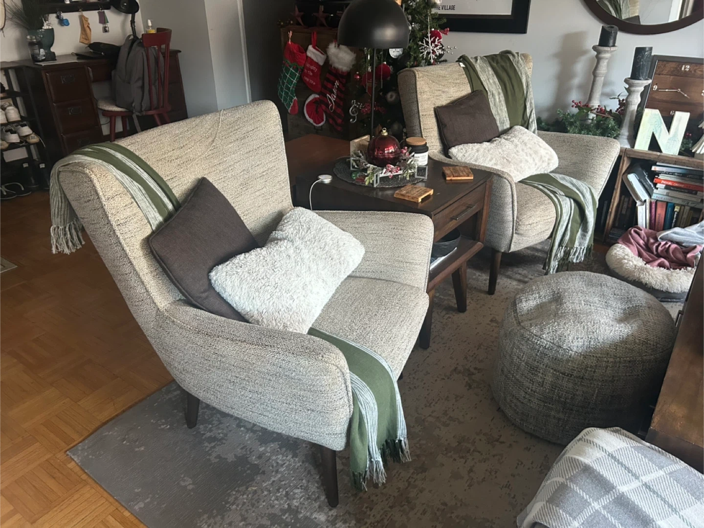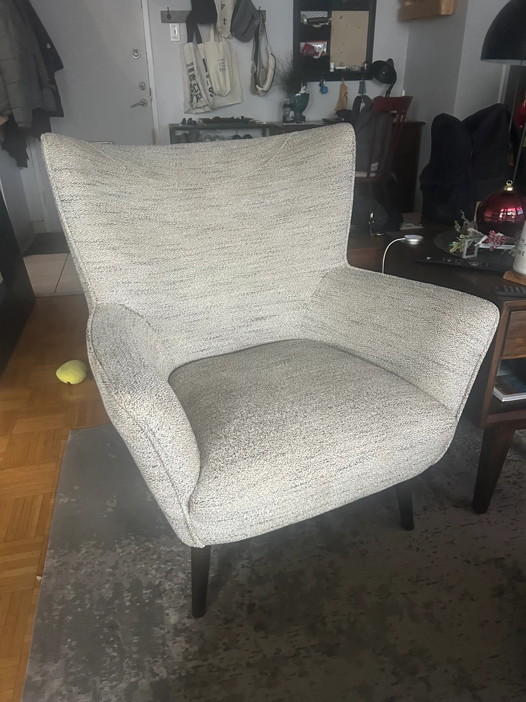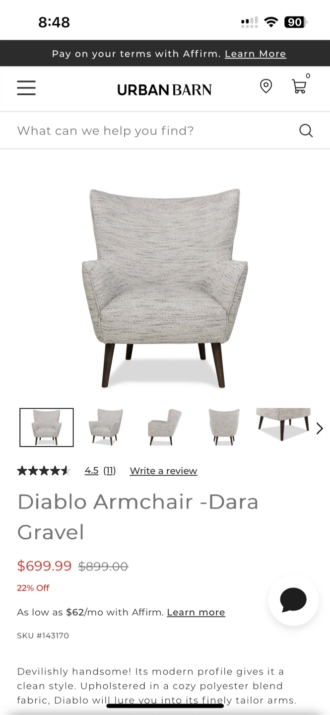 Selling 2 stylish Urban Barn Diablo Armchairs in Dara Gravel. Its modern profile gives it a clean style. Upholstered in a cozy polyester blend fabric, which I had recently professionally cleaned. Diablo will lure you into its finely tailor arms. Retails for $699.99