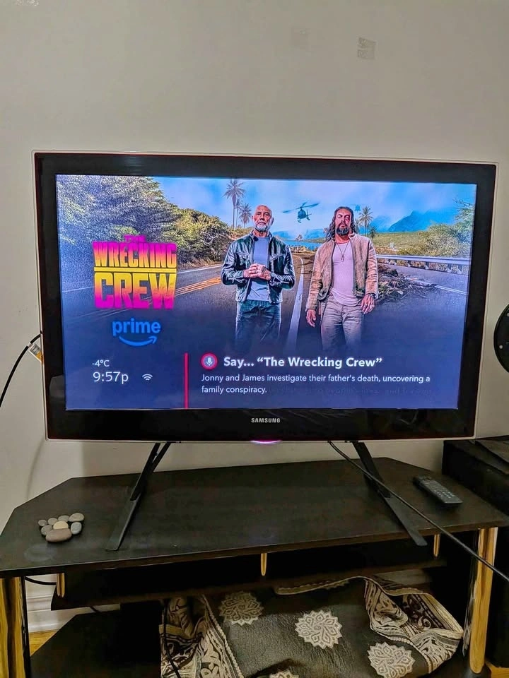 Needs a firestick for apps like Netflix, Amazon, etc. Works perfectly well, sound can be a little jarring. Pickup at 280 Wellesley St East.