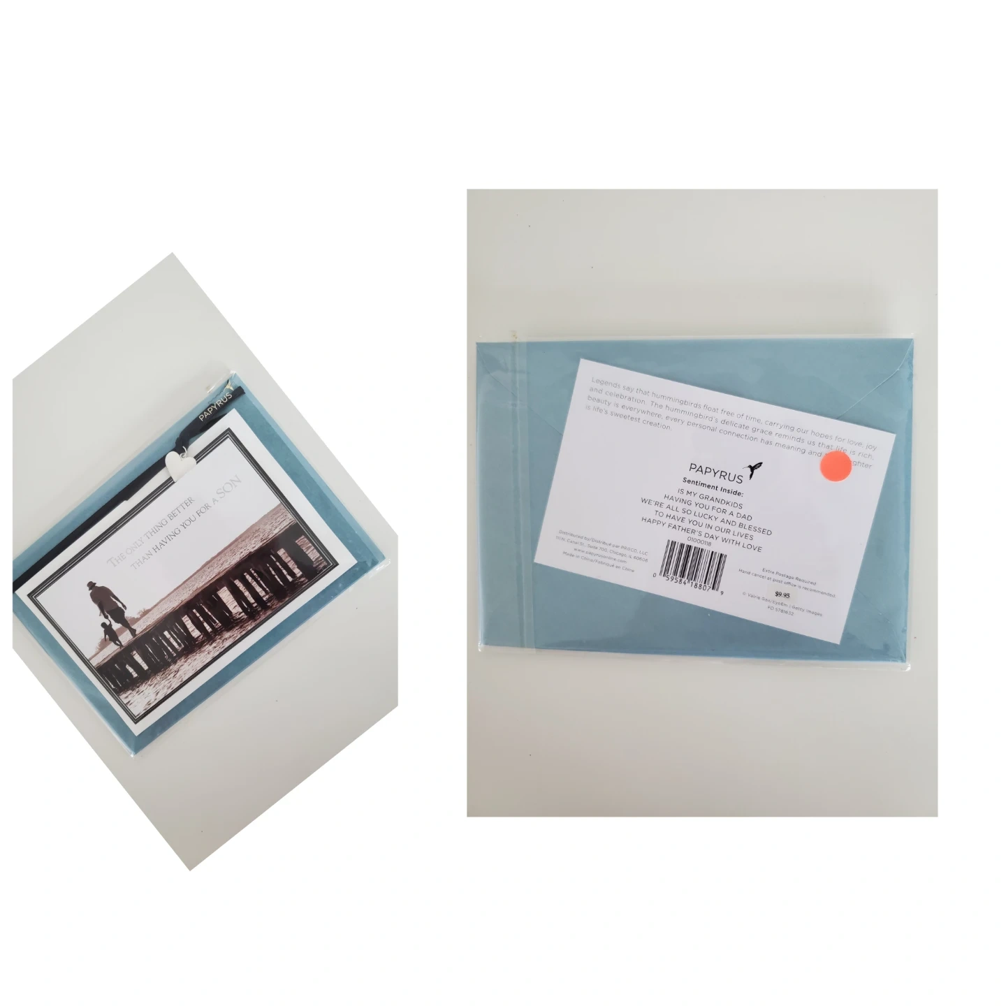A collection of four Father's Day cards, featuring designs from Papyrus and Jenny Sweeney. Includes cards for sons and general Father's Day greetings. Cards come with envelopes.