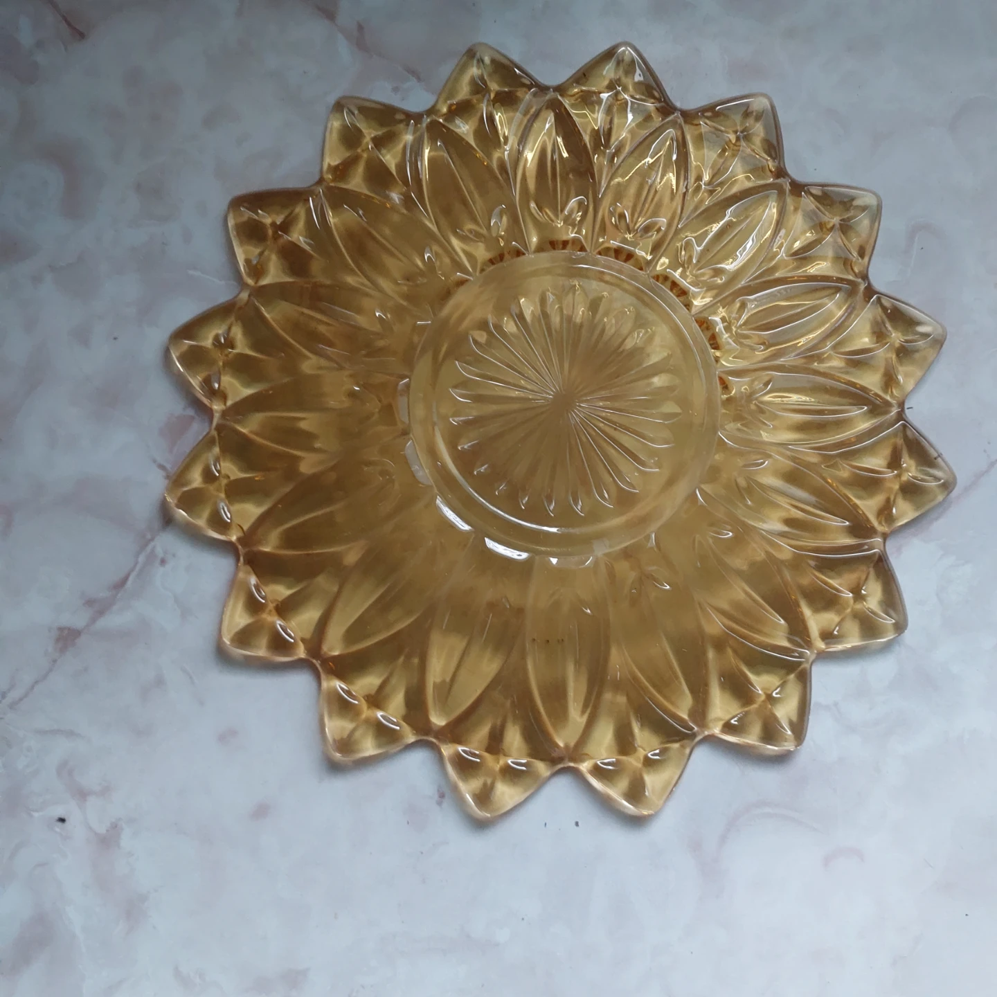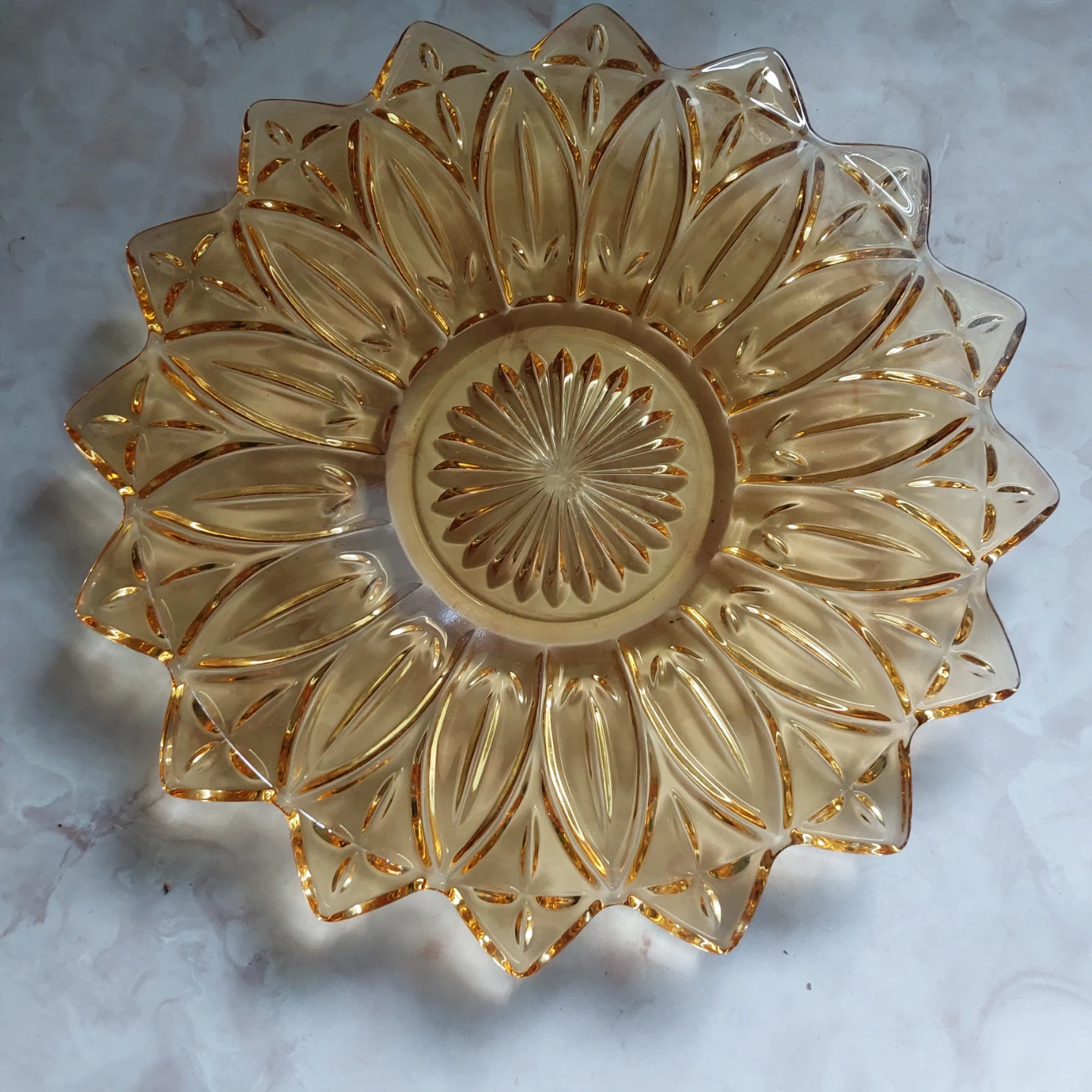 Amber Glass Sunflower Serving Dish