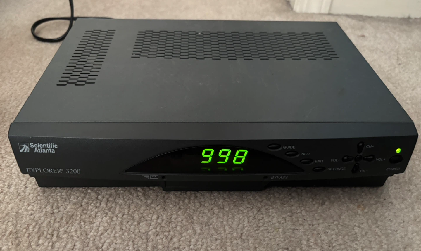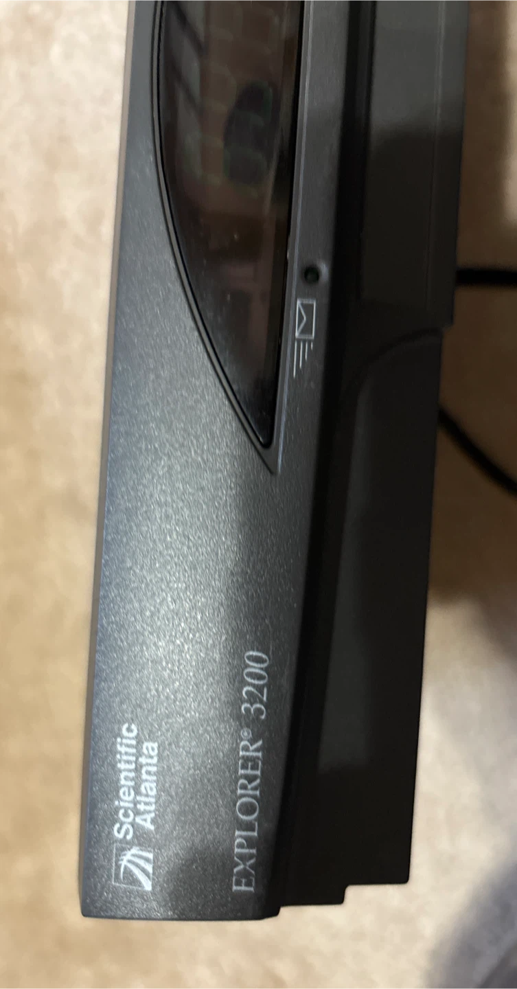 This is a Scientific Atlanta EXPLORER 3200 Digital Home Communications Terminal. It was manufactured on 10/21/2003. It supports various cable and audio/video outputs. Sold as-is in Brampton near Fletchers Parkette.