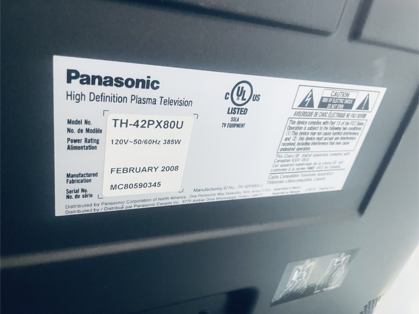 Selling a Panasonic High Definition Plasma Television, model TH-42PX80U. It's a 42-inch screen. No damages, no issues.
