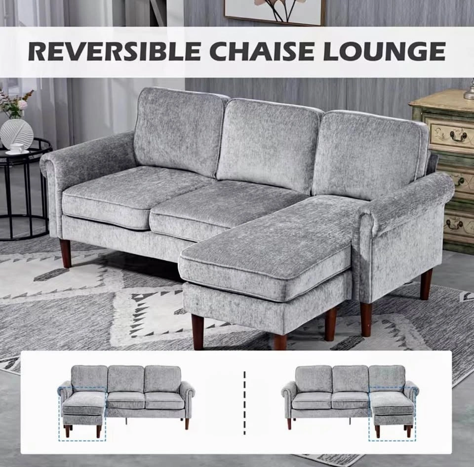 Brand New In Box reversible chaise lounge sofa with soft chenille-feel fabric, overstuffed back cushions, rolled armrests, and thick padded seat cushions. The chaise can be configured on either the left or right side. Overall dimensions are 80.3" wide and 55.1" deep. Pick up only. Cash or e-transfer accepted.