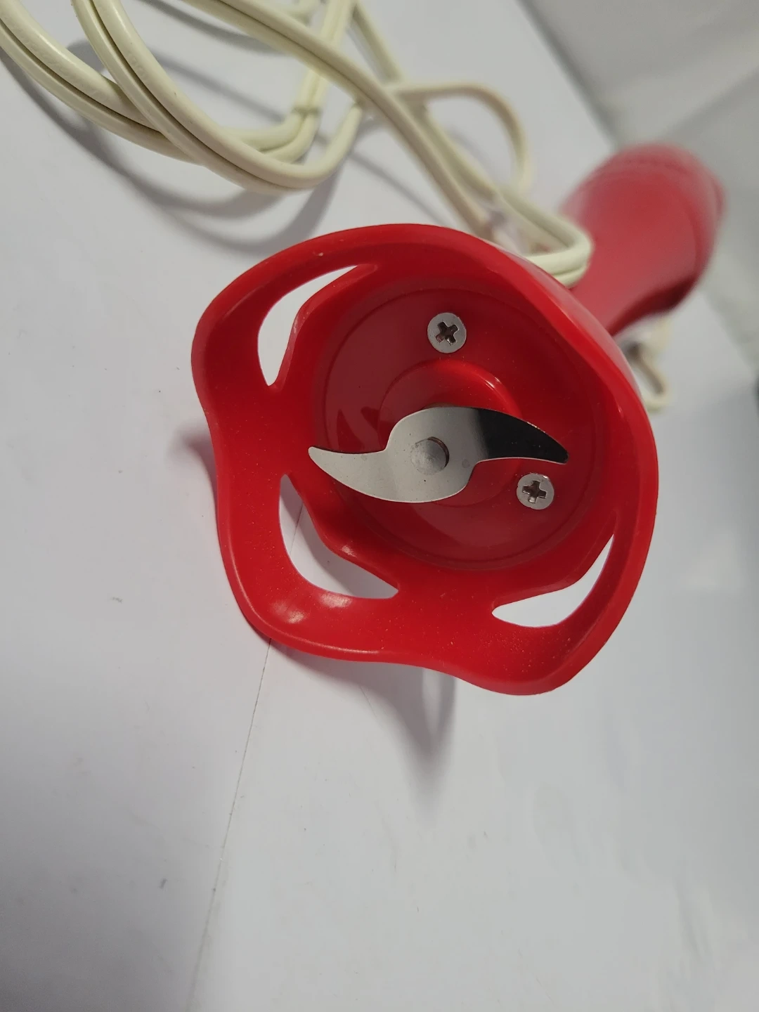 This is a red electric hand blender. It's a model NDJ-311 and uses 120V/60Hz/100W. Designed for household use only. Works great.