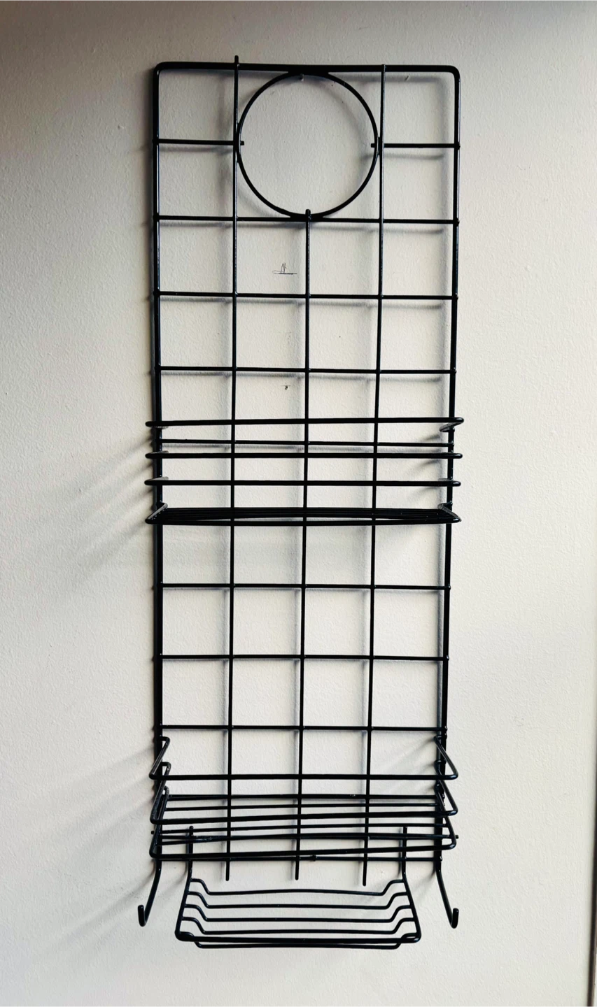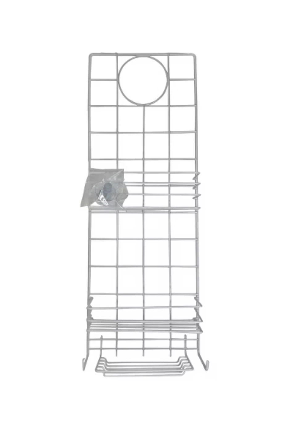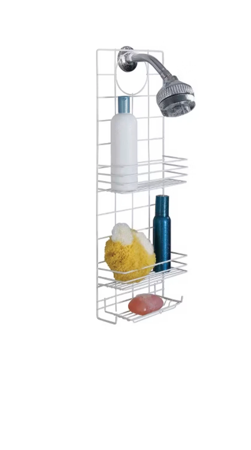The White-Coated Steel Shower Caddy from Better Houseware has 2 extra-high shelves to hold large bottles. There are hooks for a wash cloth and loofah as well as a soap holder. Keep all your shower products in 1 convenient, easy-to-access place.
