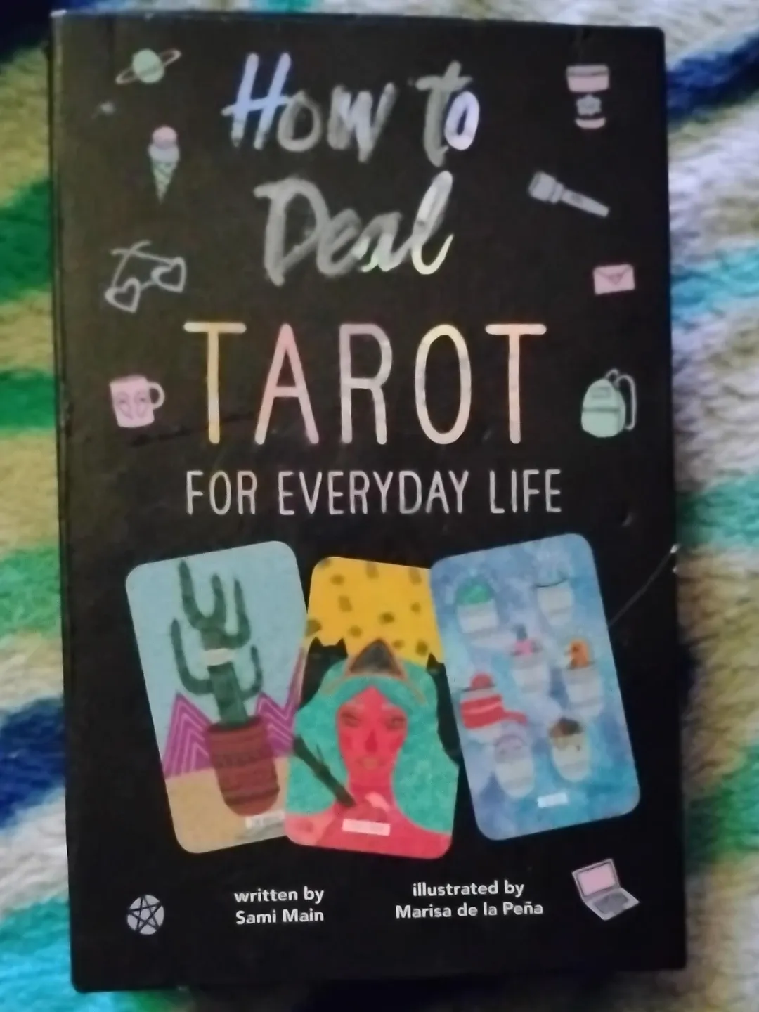 Selling a 'How to Deal Tarot for Everyday Life' card set! The cards are still sealed in plastic and the box is in great condition. This tarot deck is written by Sami Main and illustrated by Marisa de la Pena