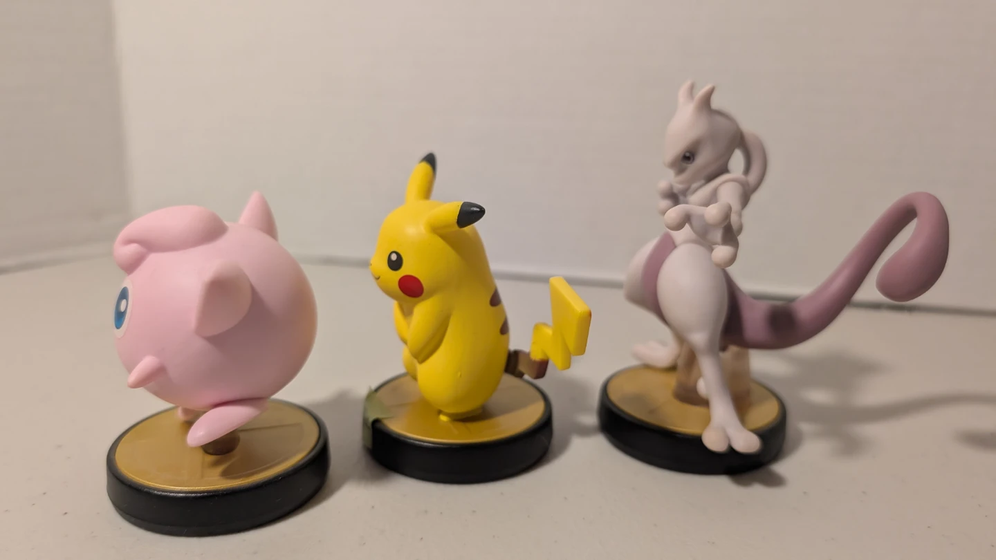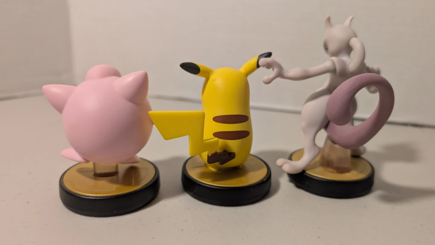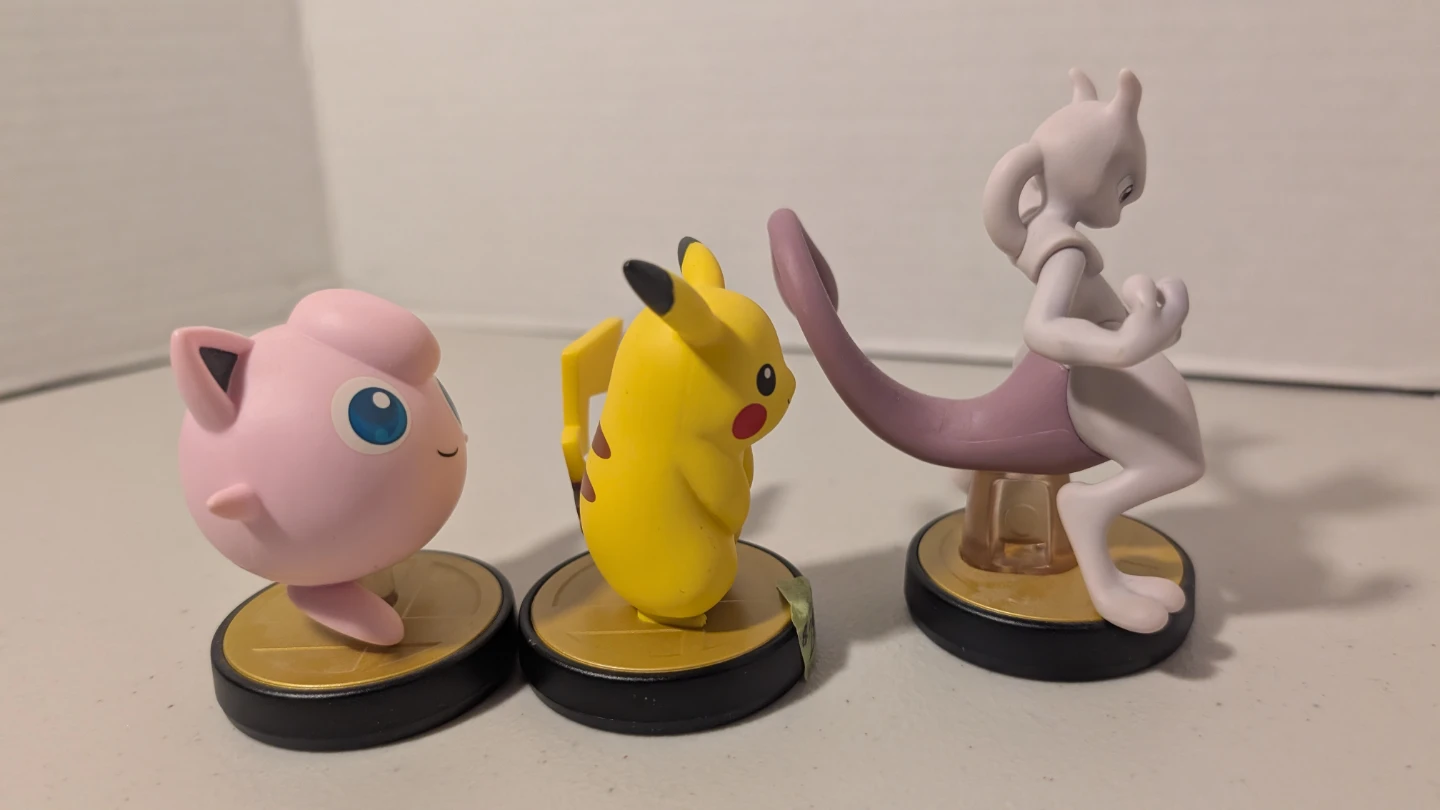 Selling a set of Nintendo Amiibo figures! Includes Pikachu, Jigglypuff, and Mewtwo. Great for collectors or fans of the Pokémon series