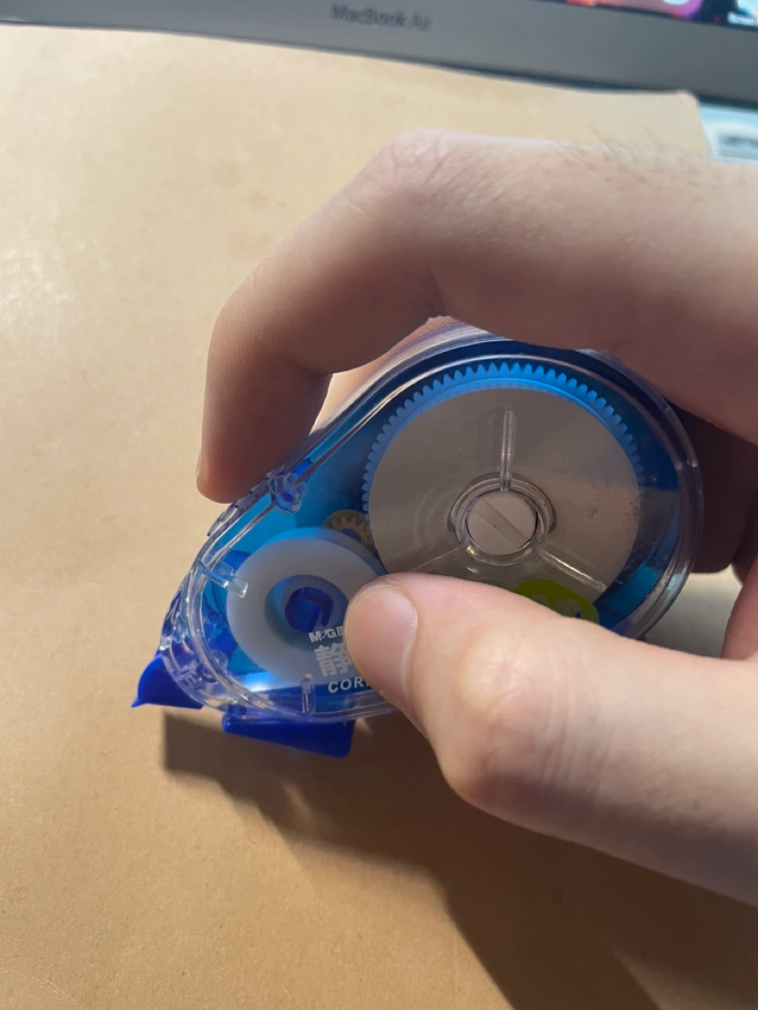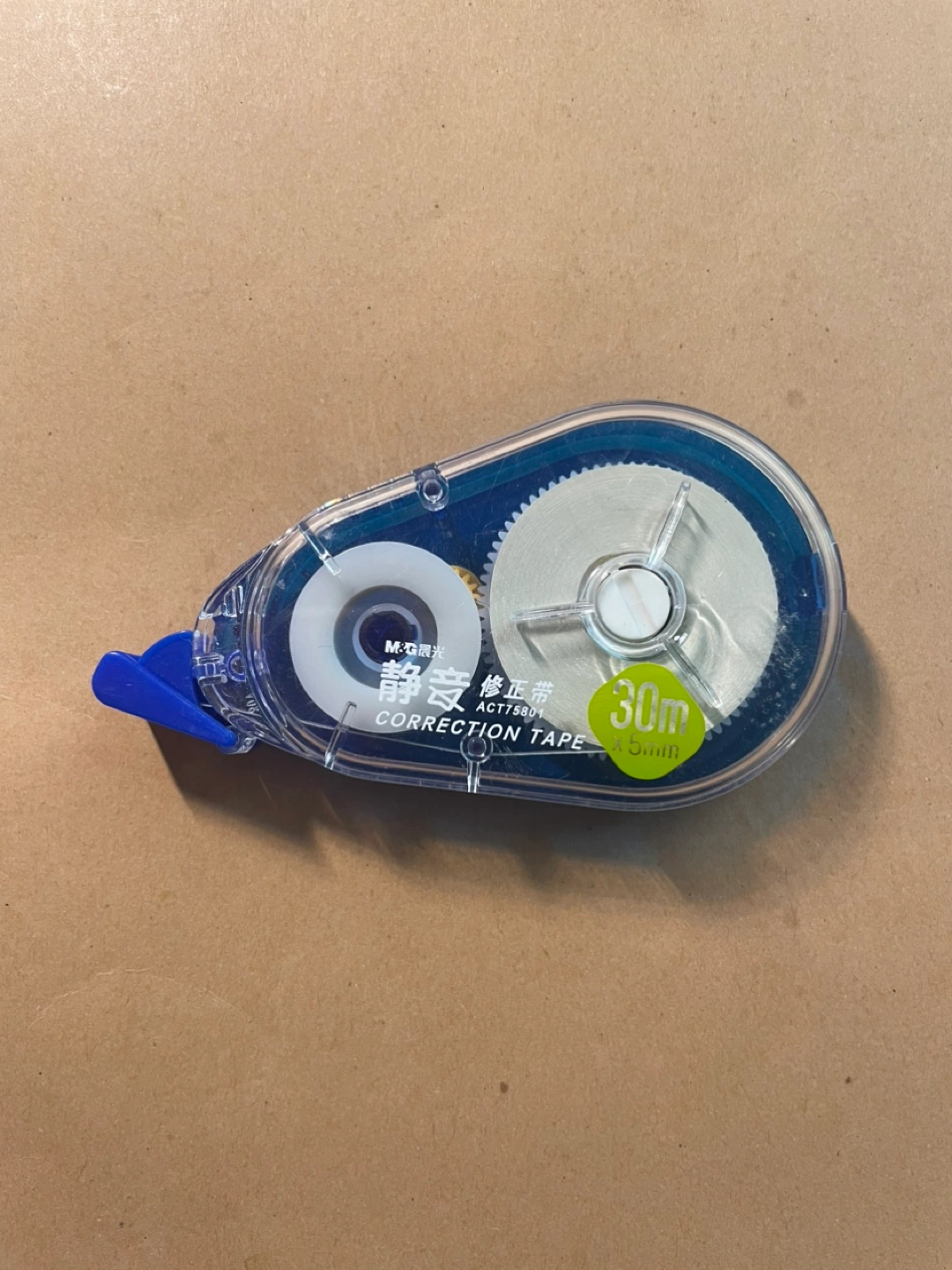 Blue plastic correction tape dispenser. Compact and easy to use. Contains correction tape. 30m of tape. Quiet won’t have noise