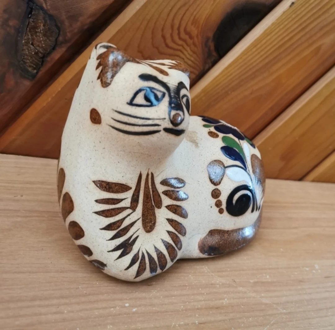 Vintage Tonalá Mexican Pottery Cat – Hand Painted Folk Art Ceramic