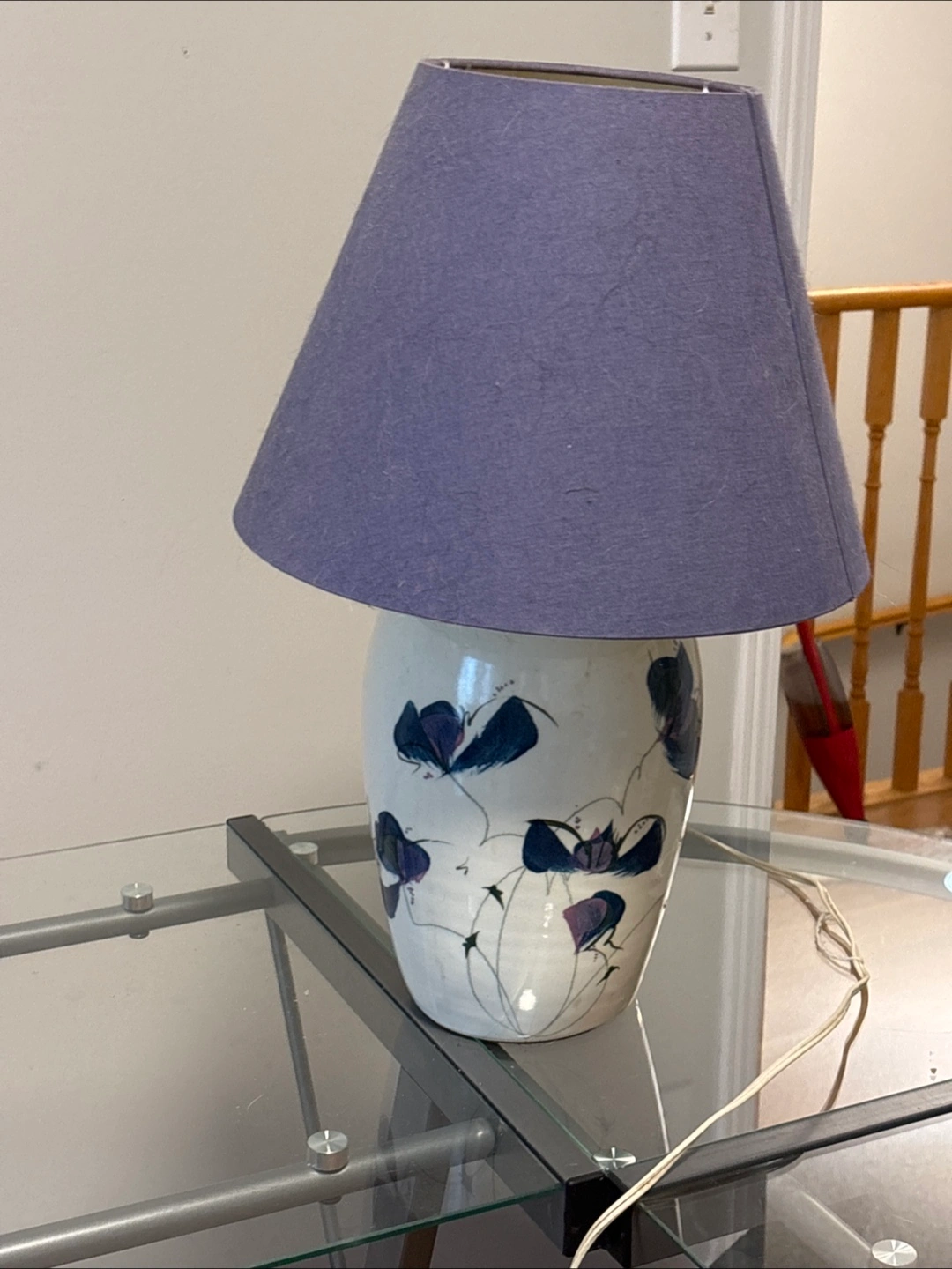 All a pop of colour and light on any room with this sweet blue and white table lamp. Idea for a bedroom or sitting room. Great deal for a small upgrade to your home.