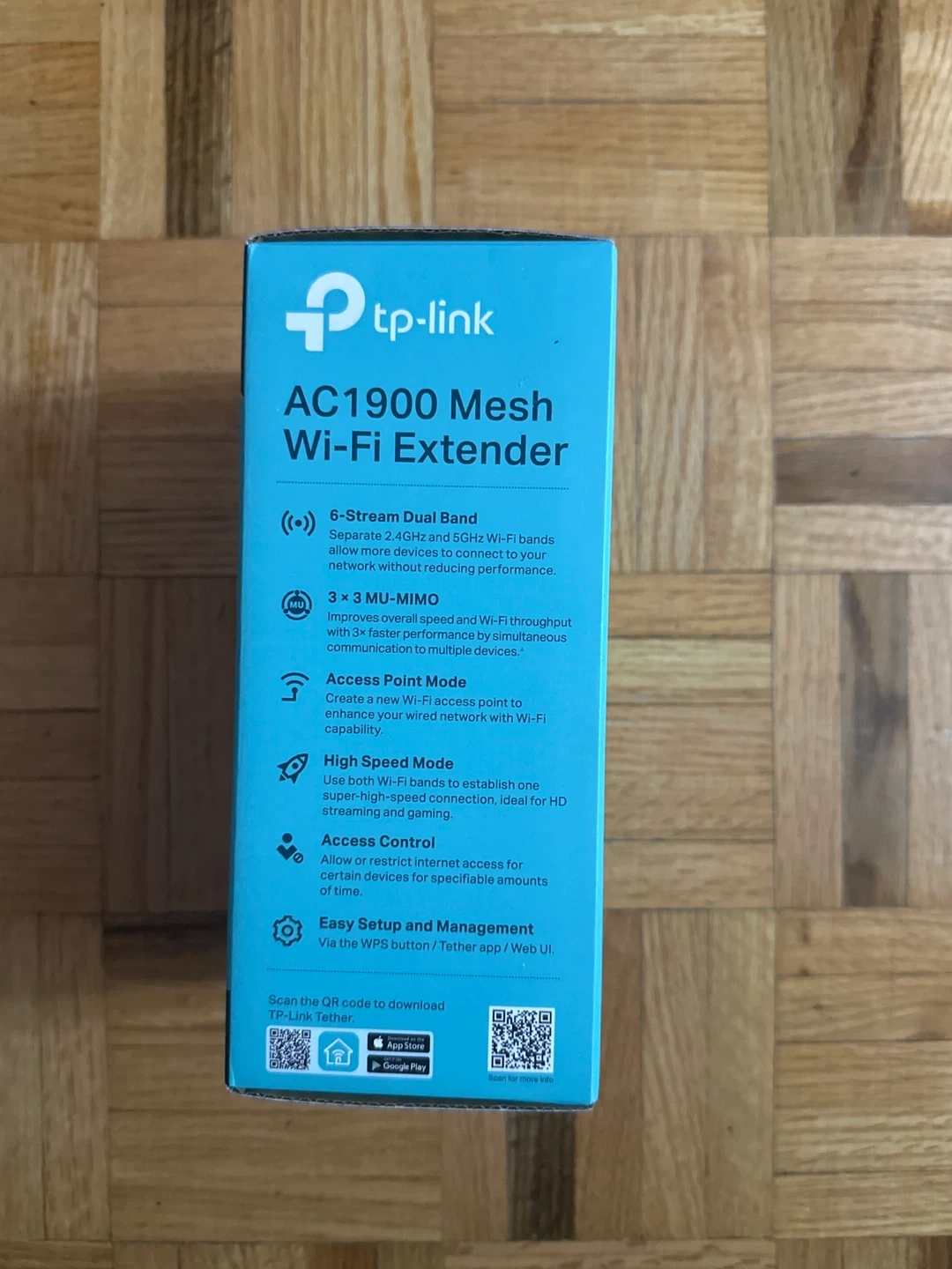 Selling a TP-Link AC1900 Mesh Wi-Fi Extender (RE550)! It's in great condition and comes with the box. This extender eliminates Wi-Fi dead zones with powerful Wi-Fi. It works with any Wi-Fi router and features: