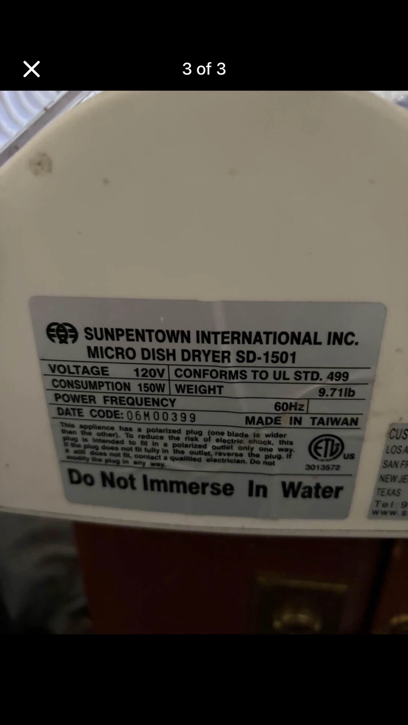 Selling a Sunpentown Micro Dish Dryer, model SD-1501. It's in good condition and ready to help with your dish drying needs! It uses 120V and consumes 150W. It also weighs 9.71lb