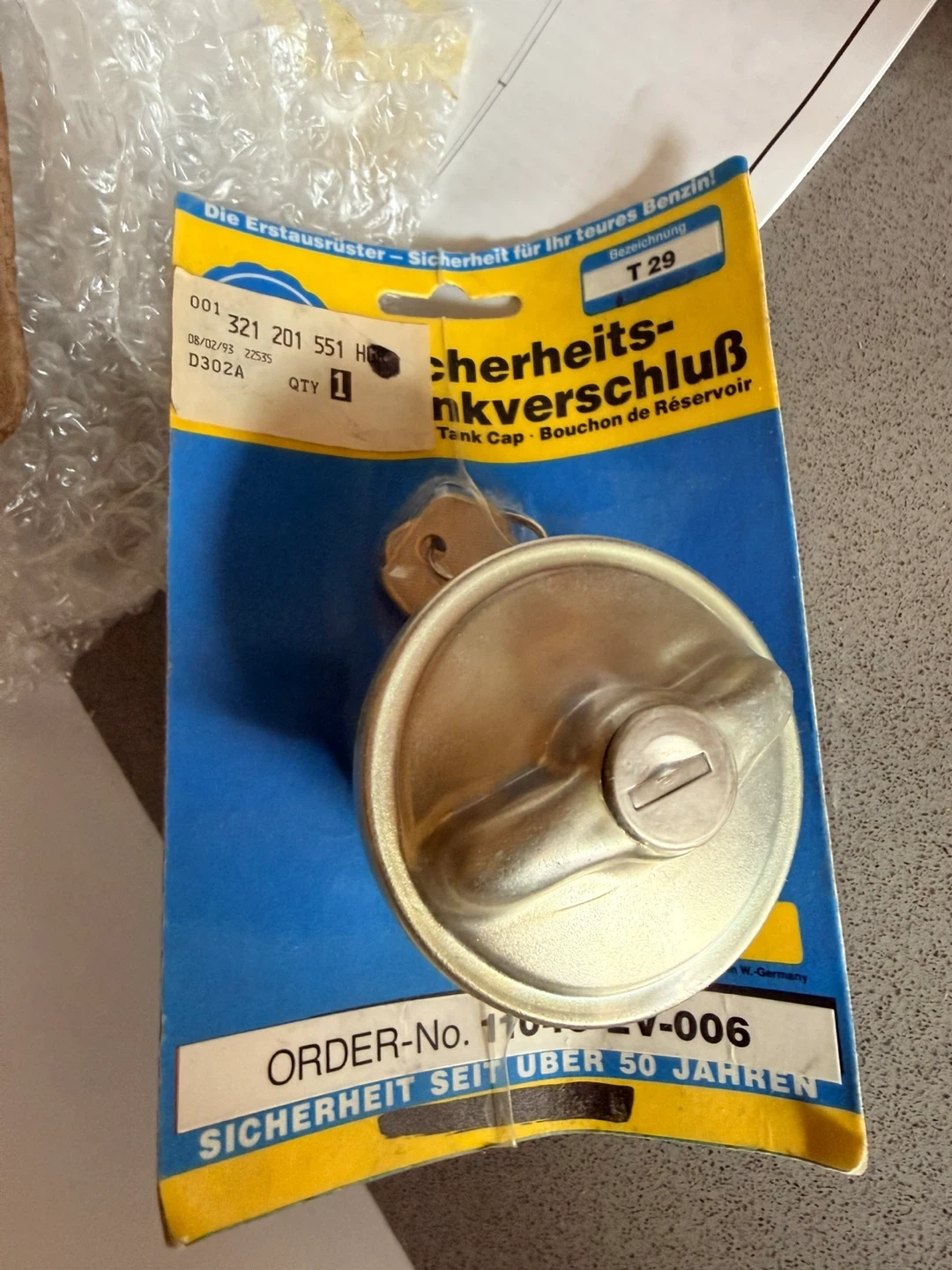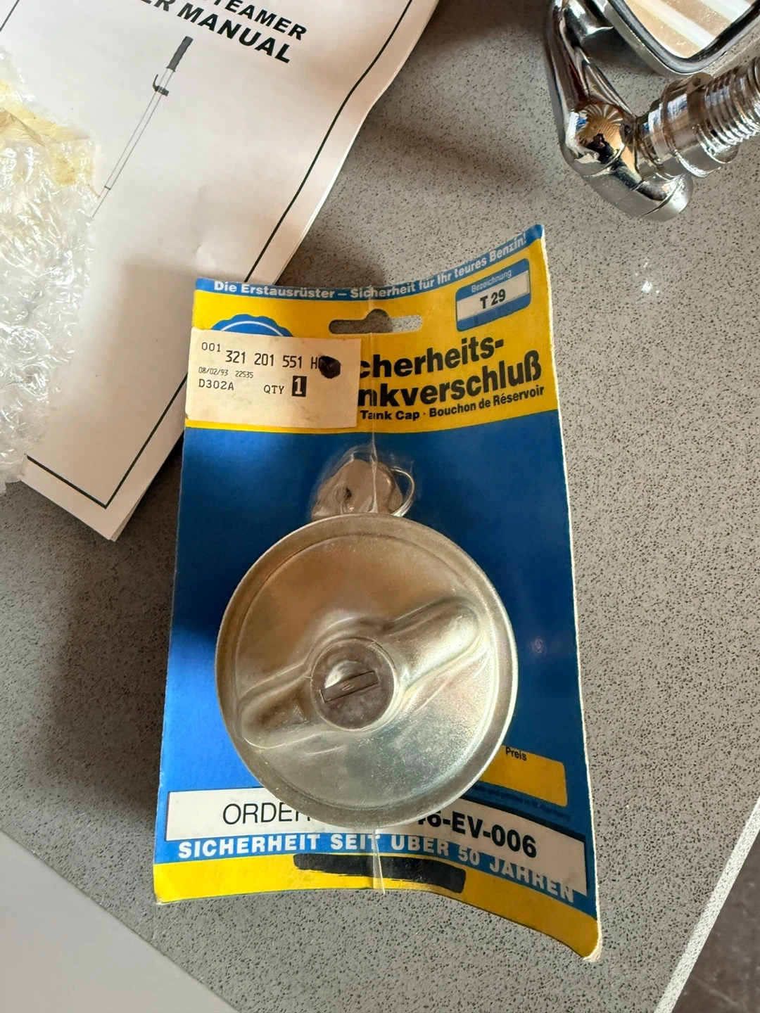 This is a tank cap with a key. It's designed for fuel reservoirs. Made in Germany. various years from 1961-1979
