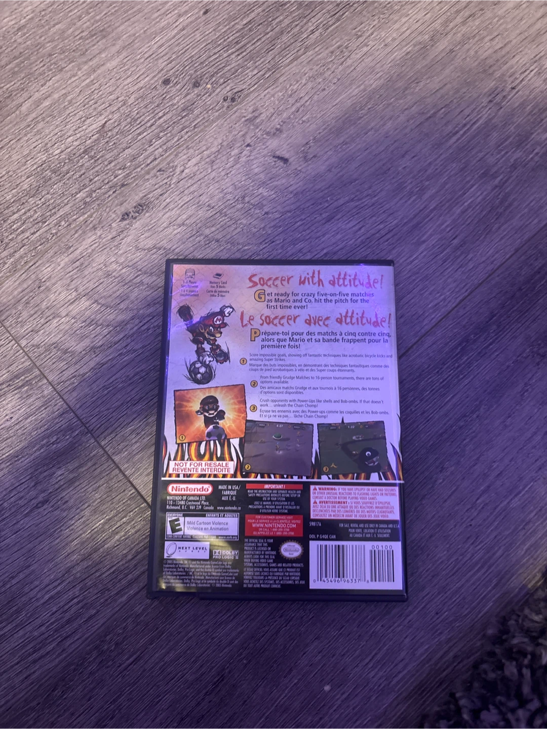 It's the Super Mario Strikers soccer game for Nintendo GameCube. Get ready for some wild five-on-five matches with Mario and his crew!