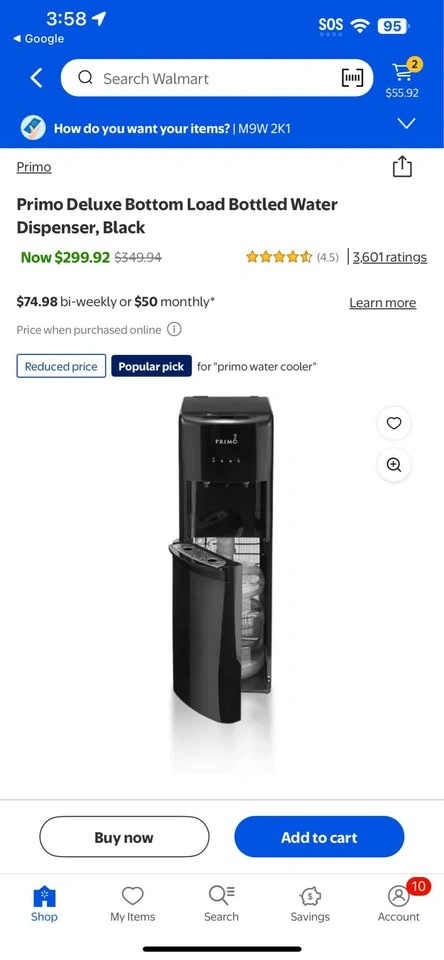 Primo Deluxe Bottom Load Bottled Water Dispenser, Black