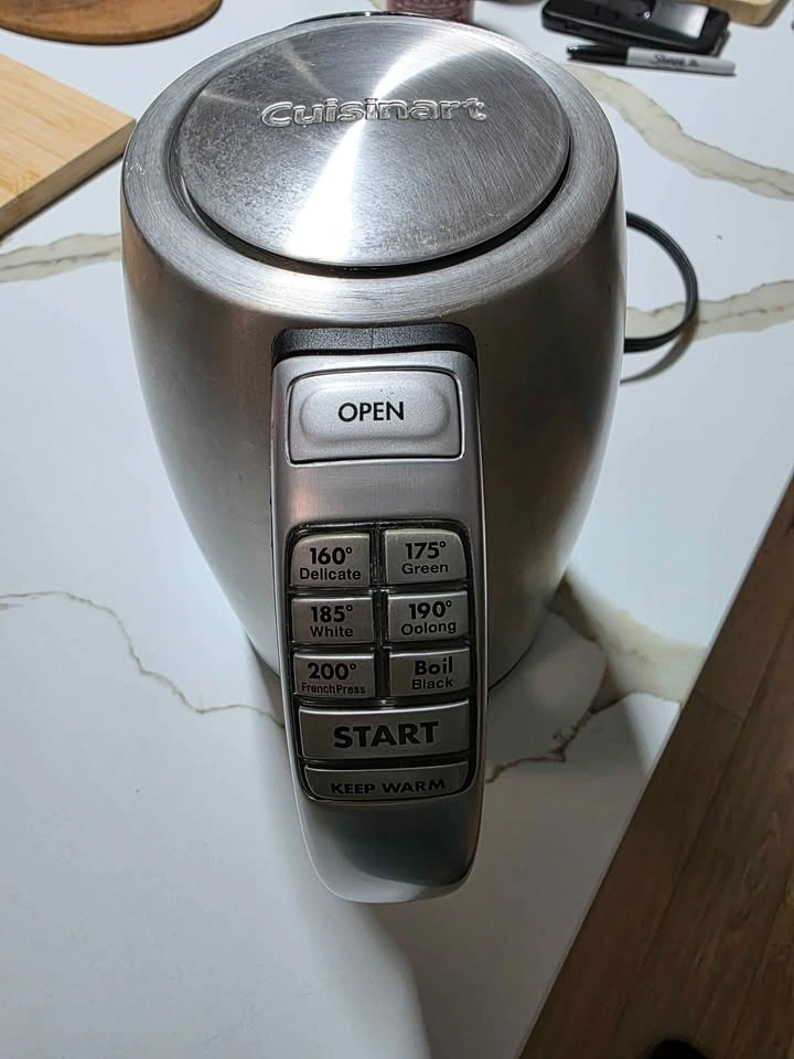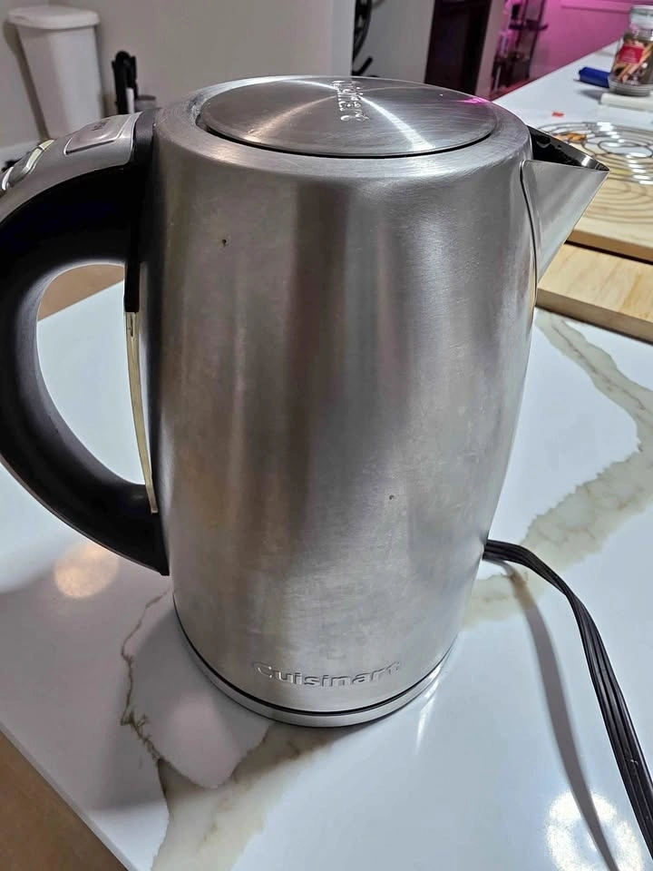 Selling my Cuisinart stainless steel electric kettle in good working condition. Heats water quickly and has multiple temperature presets, perfect for tea, coffee, or French press.