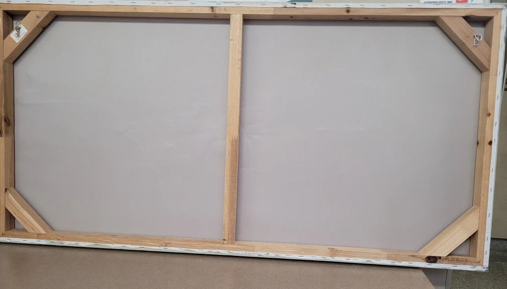 Add a touch of modern elegance to your home with this captivating abstract painting! This unique piece features a blend of neutral tones and geometric shapes, perfect for any contemporary space. The painting is in good condition and ready to hang. It measures 60 cm x 120 cm, making it a statement piece without overwhelming your wall space.