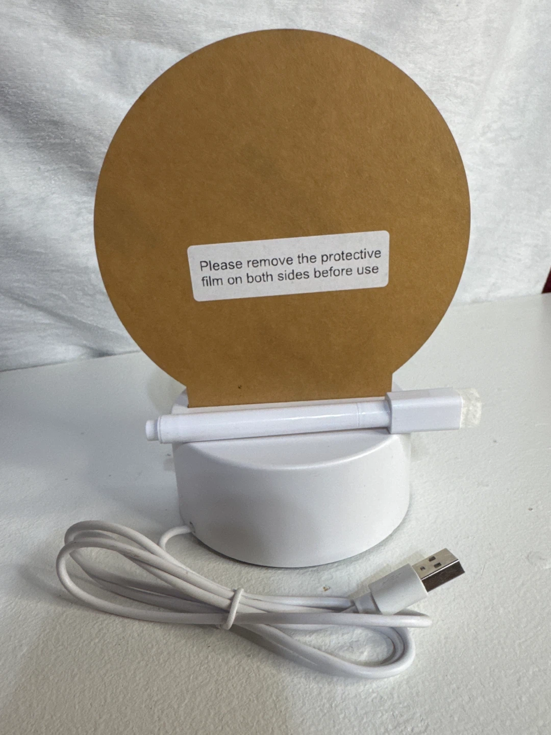 Esta es una lámpara de visualización creativa en 3D. Viene con un cable USB y un paño de limpieza. El panel de la pantalla circular tiene una nota para quitar la película protectora. ¡Es un regalo único para alguien!