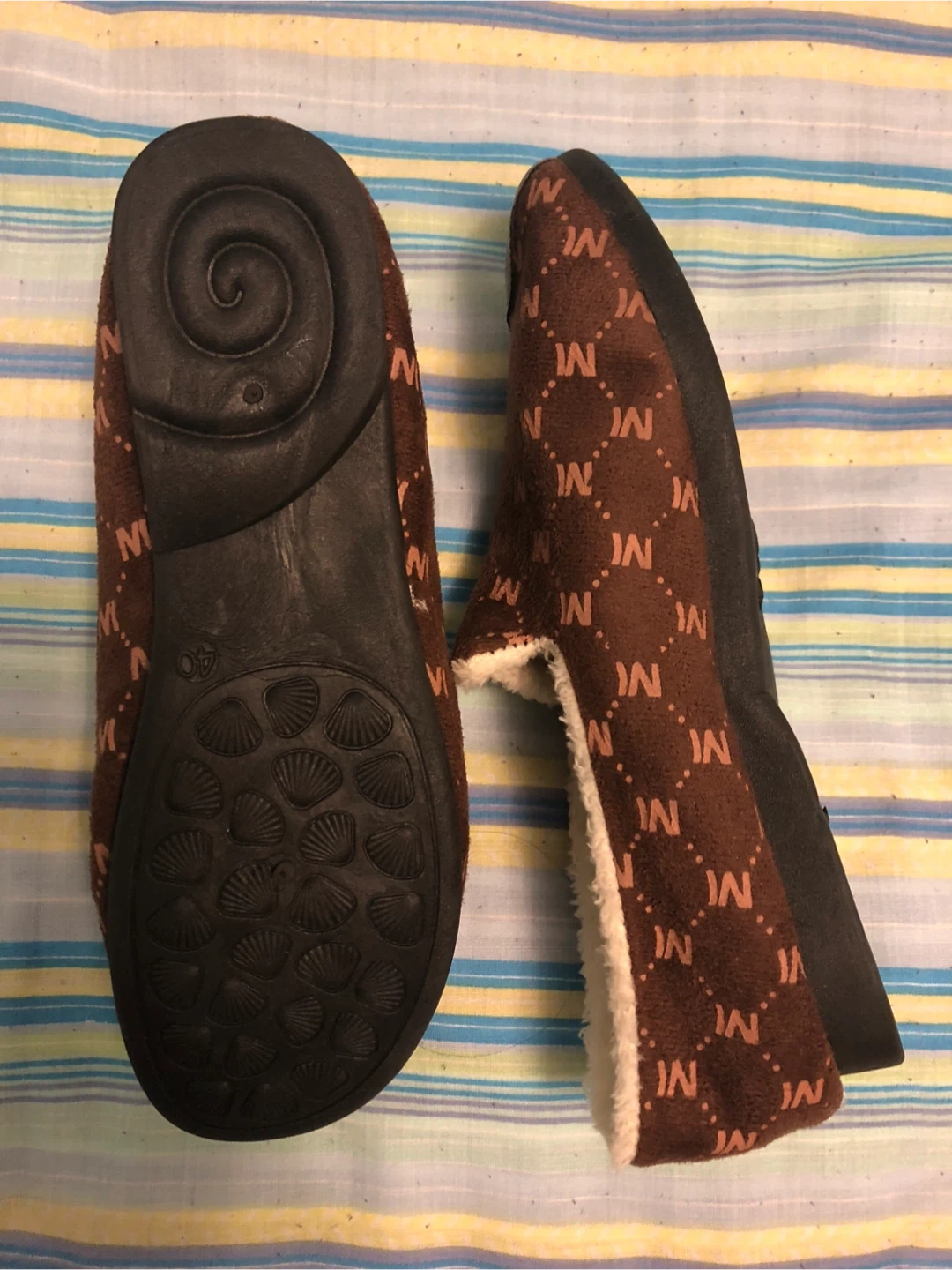 A New Brown Patterned Slippers Size 7.5/8