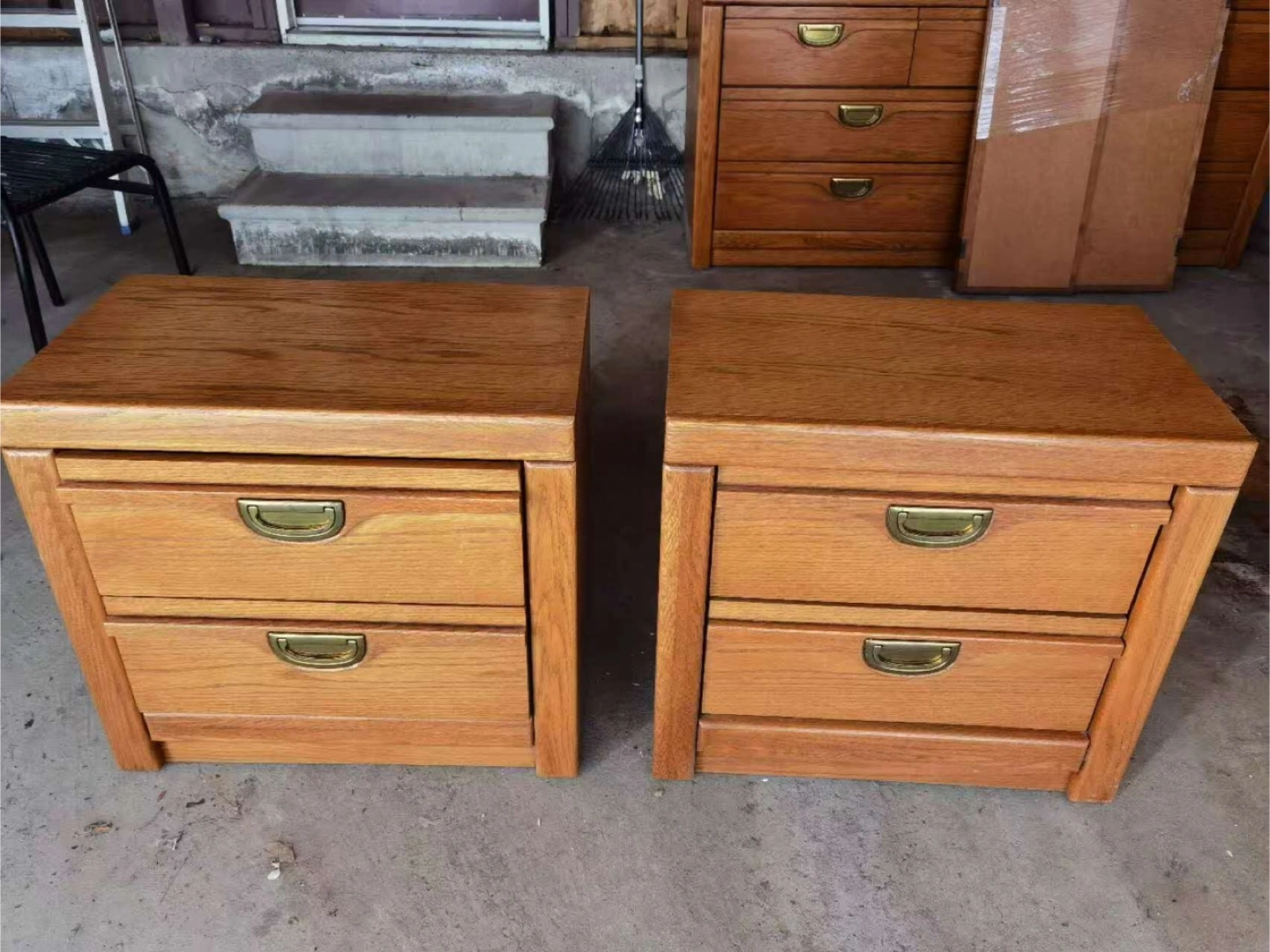 Selling a pair of wooden nightstands A matching armoire is listed on a separate listing Made of solid oak wood ๐ชต Premium quality craftsmanship ๐ช๐จ๐ฆ Made in Canada ๐