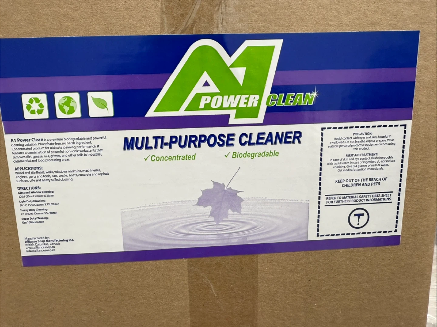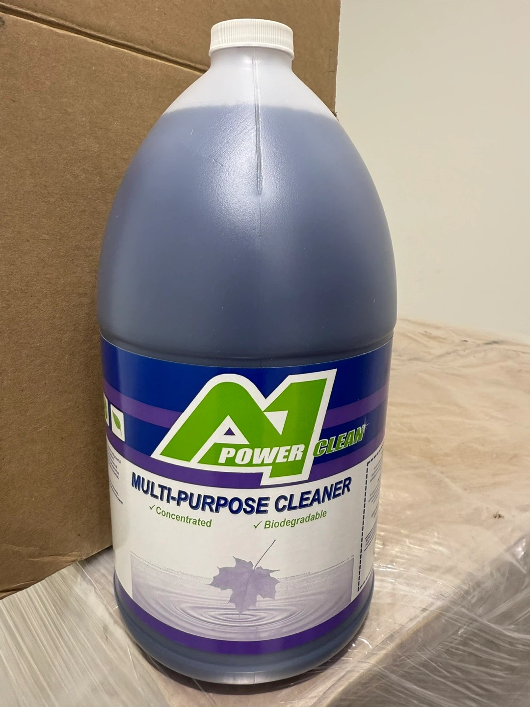 10Selling a bottle of A1 Power Clean Multi-Purpose Cleaner. It's concentrated and biodegradable, perfect for cleaning wood, tile, floors, walls, machinery, engines, concrete, asphalt surfaces, and soiled clothing. Great for commercial and food processing areas as well. Solution is highly concentrated, will last for atleast 6-7 months. This is locally made, not imported from China or USA.