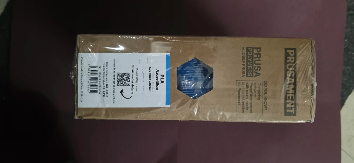 Prusament PLA filament by Josef Prusa. Azure Blue colour. Weight is 1050g +/- 0.02mm. It's manufactured in-house to high-quality standards. The filament's 1.75mm diameter is precise for 3D printing.