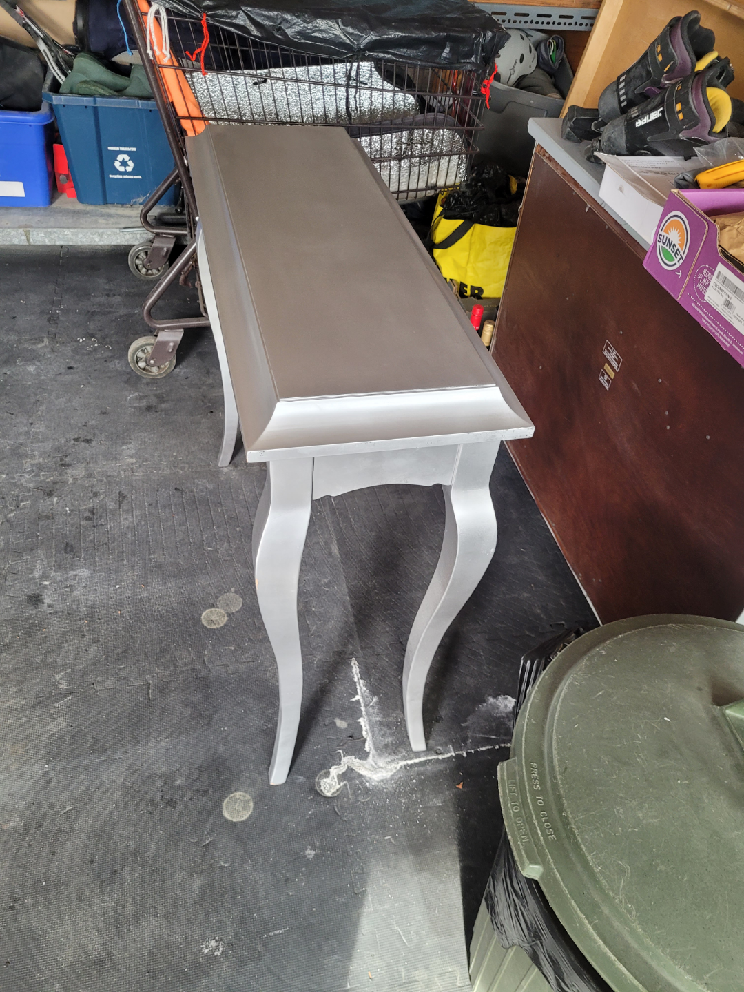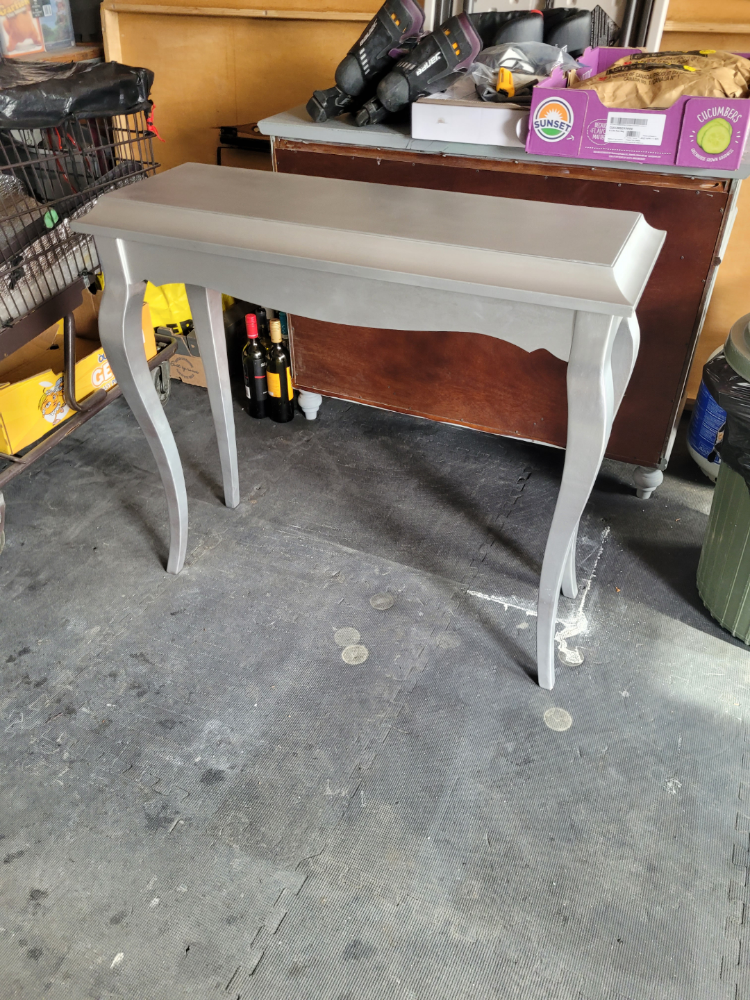 1 / 21 / 2Buy & SellSilver Console TableSilver Console Table$40Small silver console table. Elegant curved legs. Perfect for an entryway or hallway. Good condition.ConditionLike newDimensions32" tall 36" wide 13" deepWHERE TO MEET6 Frybrook CtView MapSELLERverifiedMariaDarren Park2159 reviews2 chats·5 favorites·327 viewsSEND CHAT TO SELLERHi Maria! I’m interested in your listing.Hi Maria! I’m interested in your listing.Get the Karrot app to chatSign In to chat