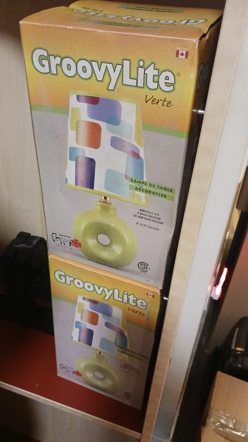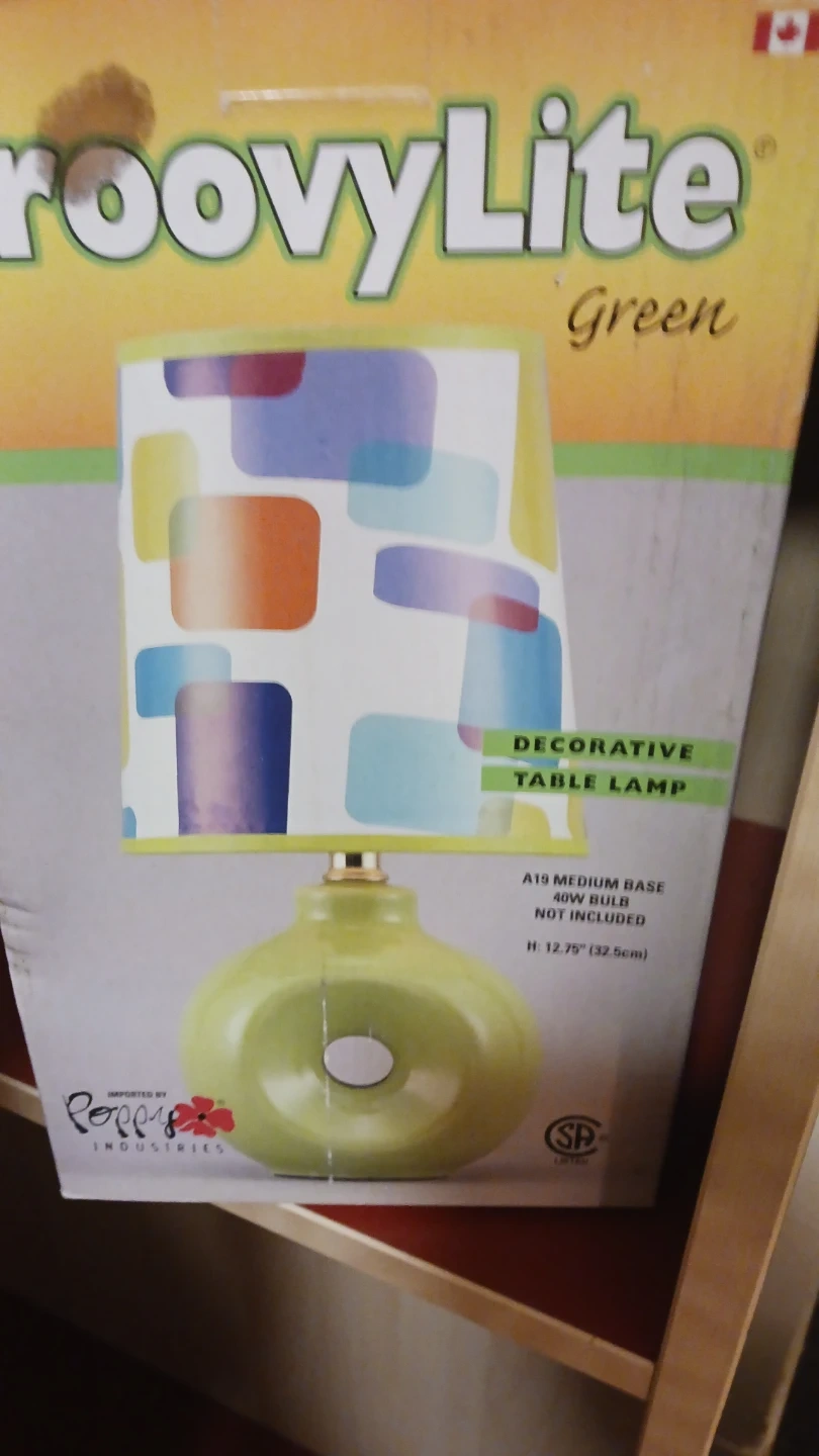 This GroovyLite decorative table lamp comes in a cheerful green colour. Uses an A19 bulb, not included. Cute and well balanced. There are 2 of them! Sold separately!