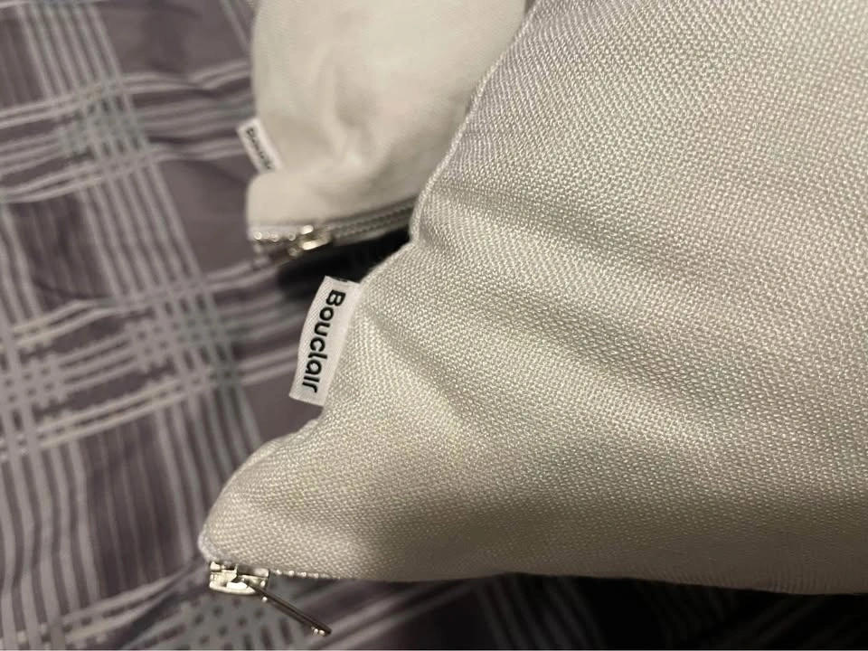 Simple, beautiful, and effortlessly elegant — these Bouclair pillows add a touch of timeless charm to any space. Their soft off-white color blends seamlessly with any décor, making them perfect for your sofa, bed, accent chair, or cozy reading nook. Style meets versatility — elevate your space with these classic cushions that never go out of style. Used for only a couple months as decorative pillows in a guest room that was never used! Dimensions: 20” x 13”