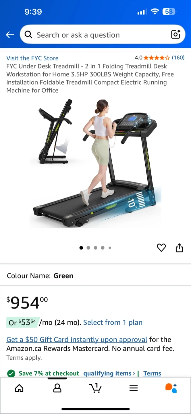 Selling a FYC Under Desk Treadmill. This is a 2 in 1 folding treadmill desk workstation, great for home or office use. It has a 3.5HP motor and a 300LBS weight capacity. The original listing price was $954.00.
