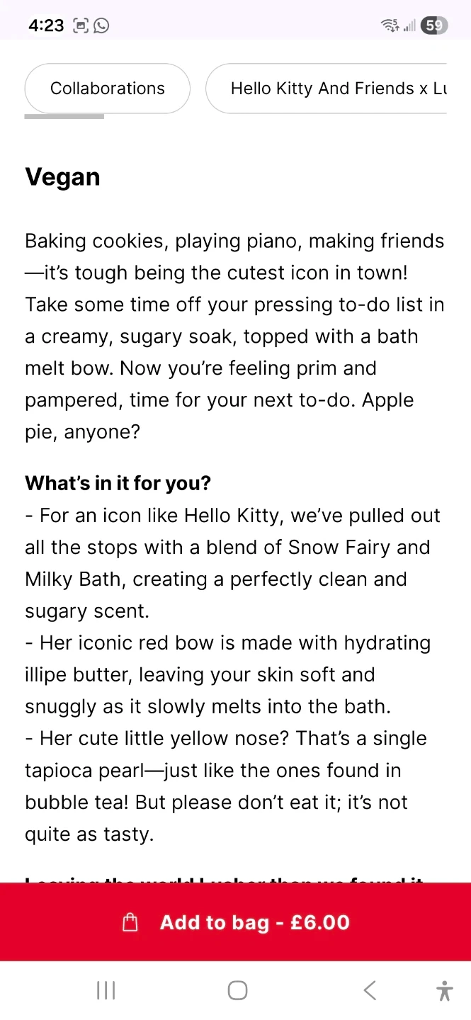 This is a LUSH Hello Kitty bath bomb. It's designed to fizz and dissolve in your bath. Get ready for a fun and fragrant soak!