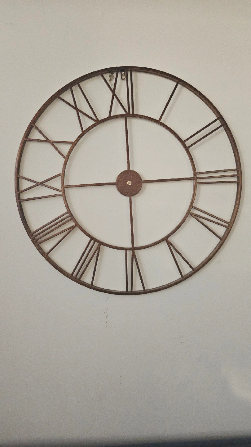 Add a touch of rustic charm to your home with this metal wall clock! It features a classic design with Roman numerals and an open face