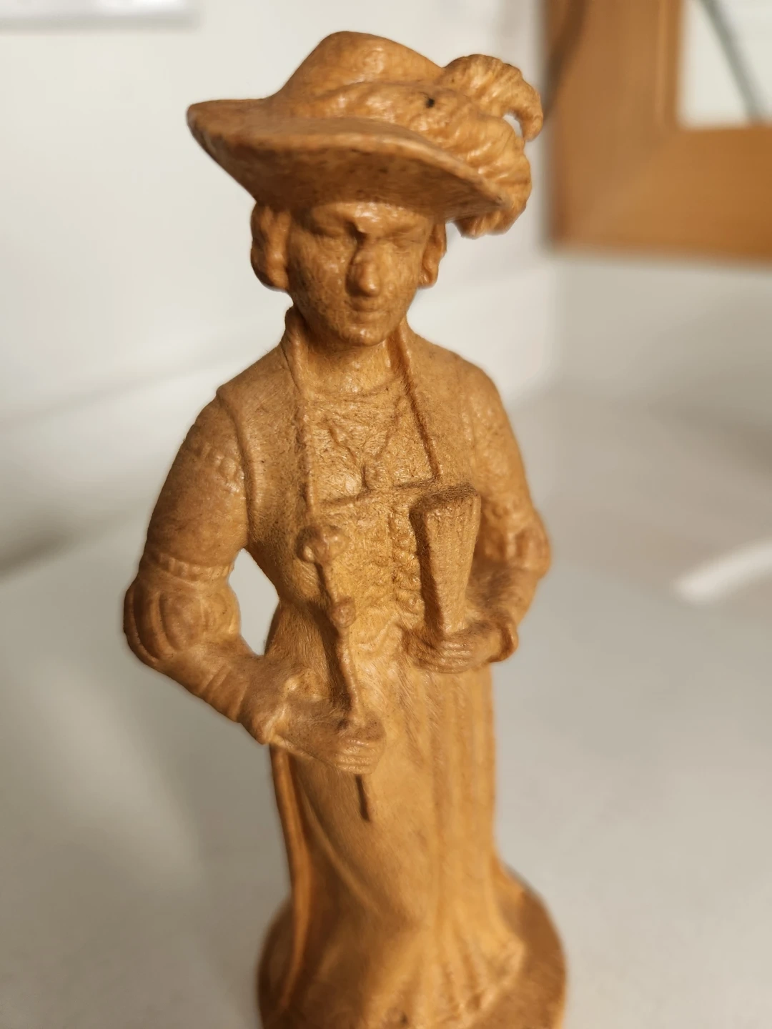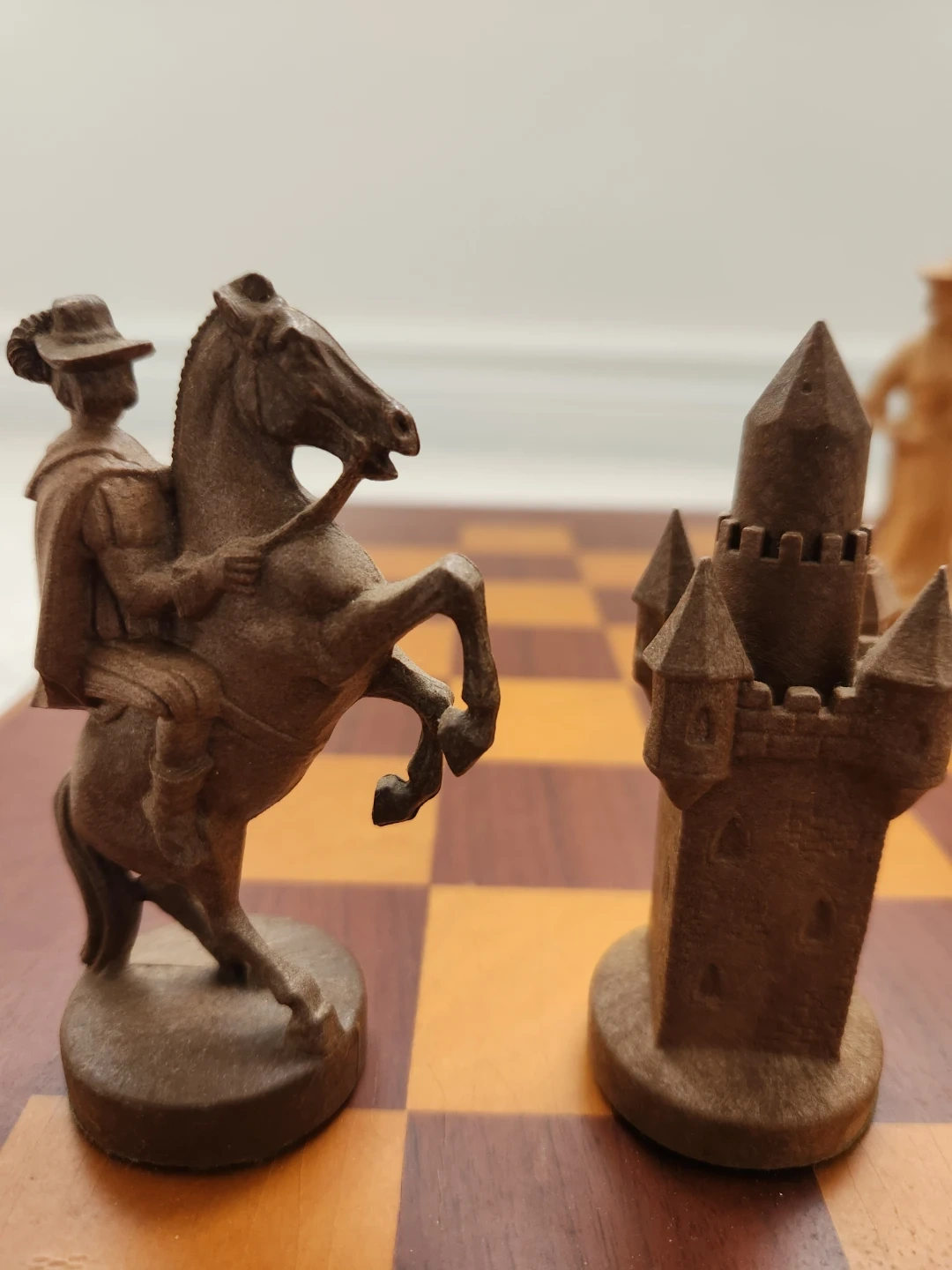 This is a complete set of chess pieces featuring detailed figures. It's a classic design that would look great on any chessboard. These pieces are well-crafted for strategic play. The king is 12 cm tall.