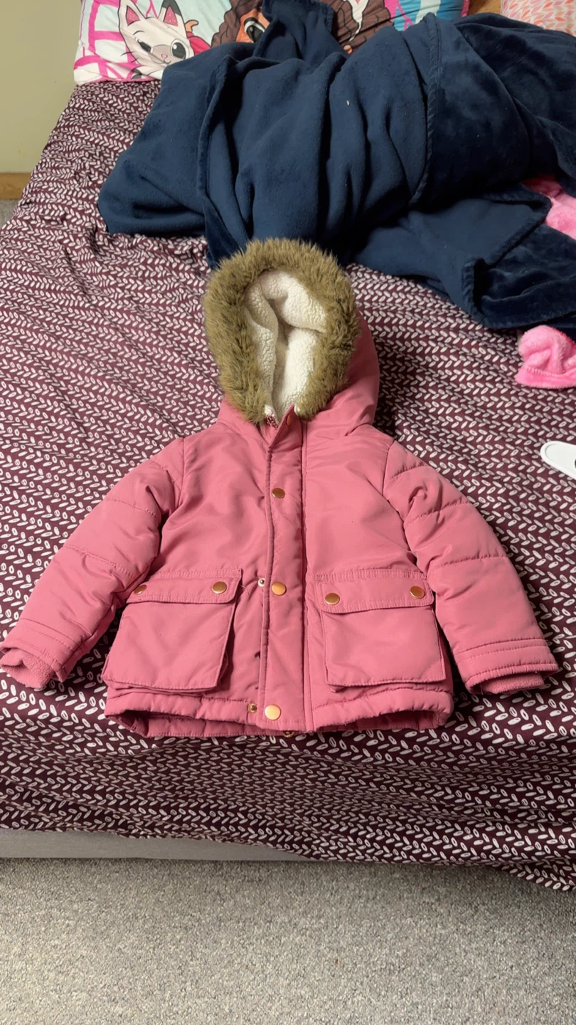 This is a super cute pink puffer jacket from George! It's perfect for keeping your little one warm and cozy during the colder months