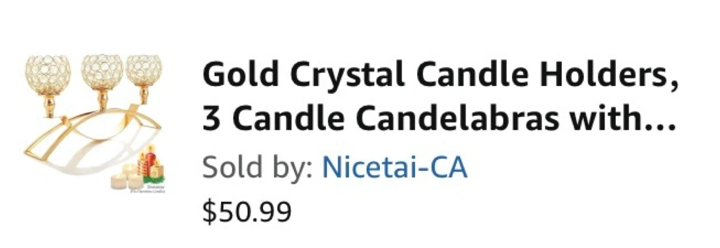 This is a three-candle candelabra with a gold finish and crystal accents. It's designed to hold three pillar or votive candles. Adds a touch of elegance to any space!
