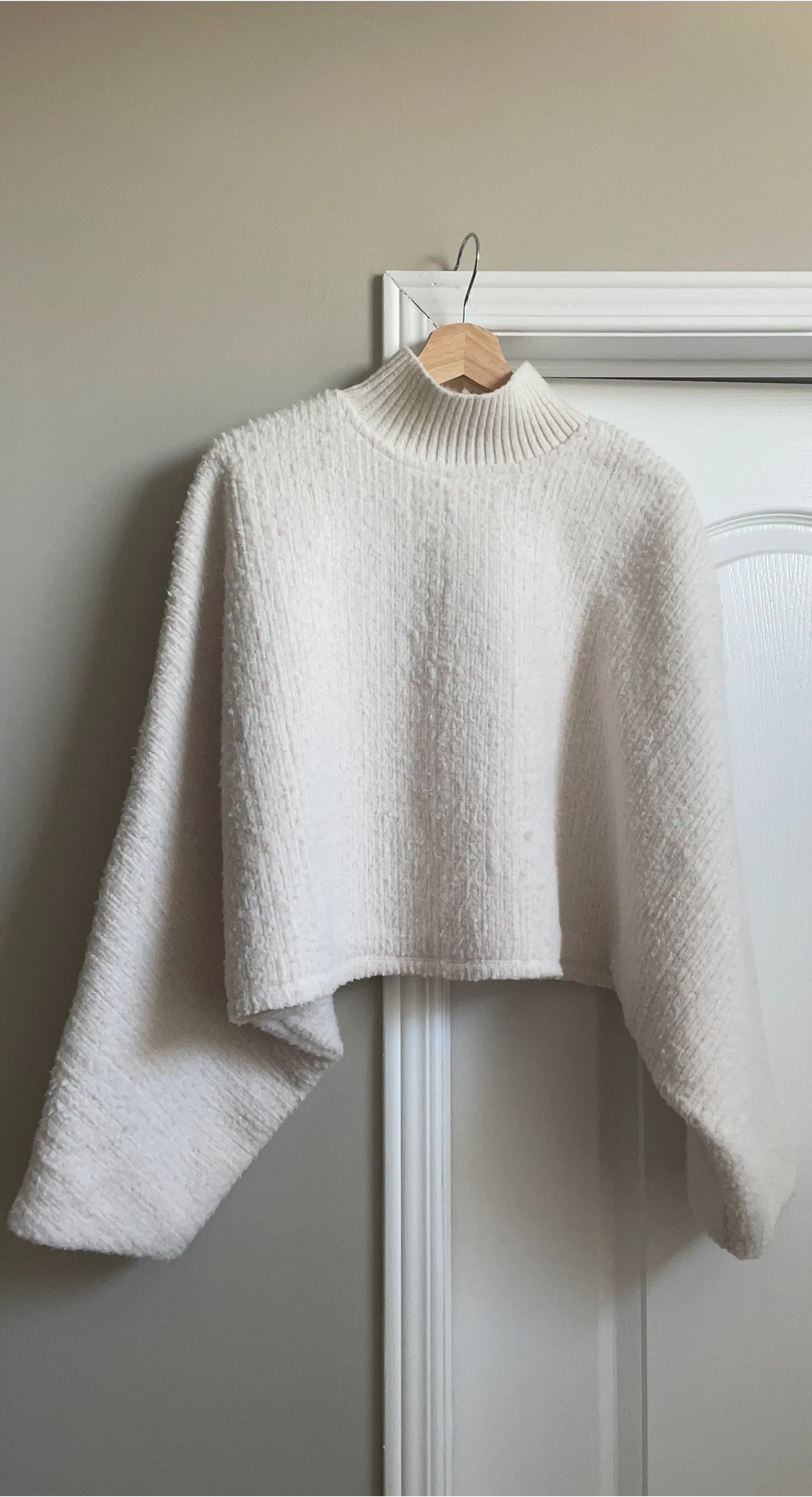 Zara Cream Cropped Mock Neck Wingbat Sweater M/L