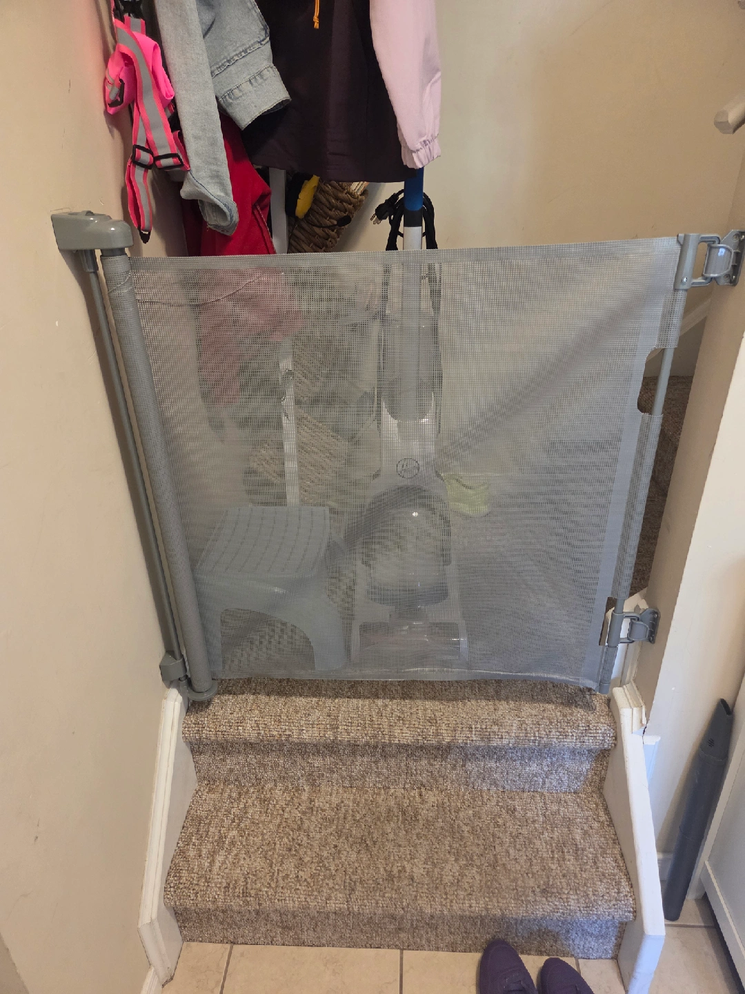 Selling a Retract-A-Gate in grey. It measures 33.6 x 55 inches. Perfect for keeping little ones safe! Used it for our puppy no longer needed