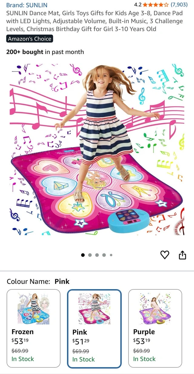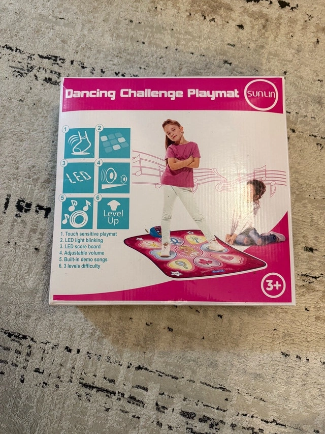 Get ready to bust a move with this Sunlin Dance Mat! It's a touch-sensitive playmat with LED lights, an LED score board, adjustable volume, and built-in demo songs. With 3 levels of difficulty, it's perfect for kids aged 3+. Key features include: Touch sensitive playmat, LED light blinking, LED score board, Adjustable volume, Built-in demo songs, 3 levels difficulty. This mat is practically brand new, still in its original packaging, ready to bring some fun into your home. Comparable items are listed on Kijiji for around $40, and I am offering it for a reasonable price, considering its condition. If you see this ad, the dance-off is still on!