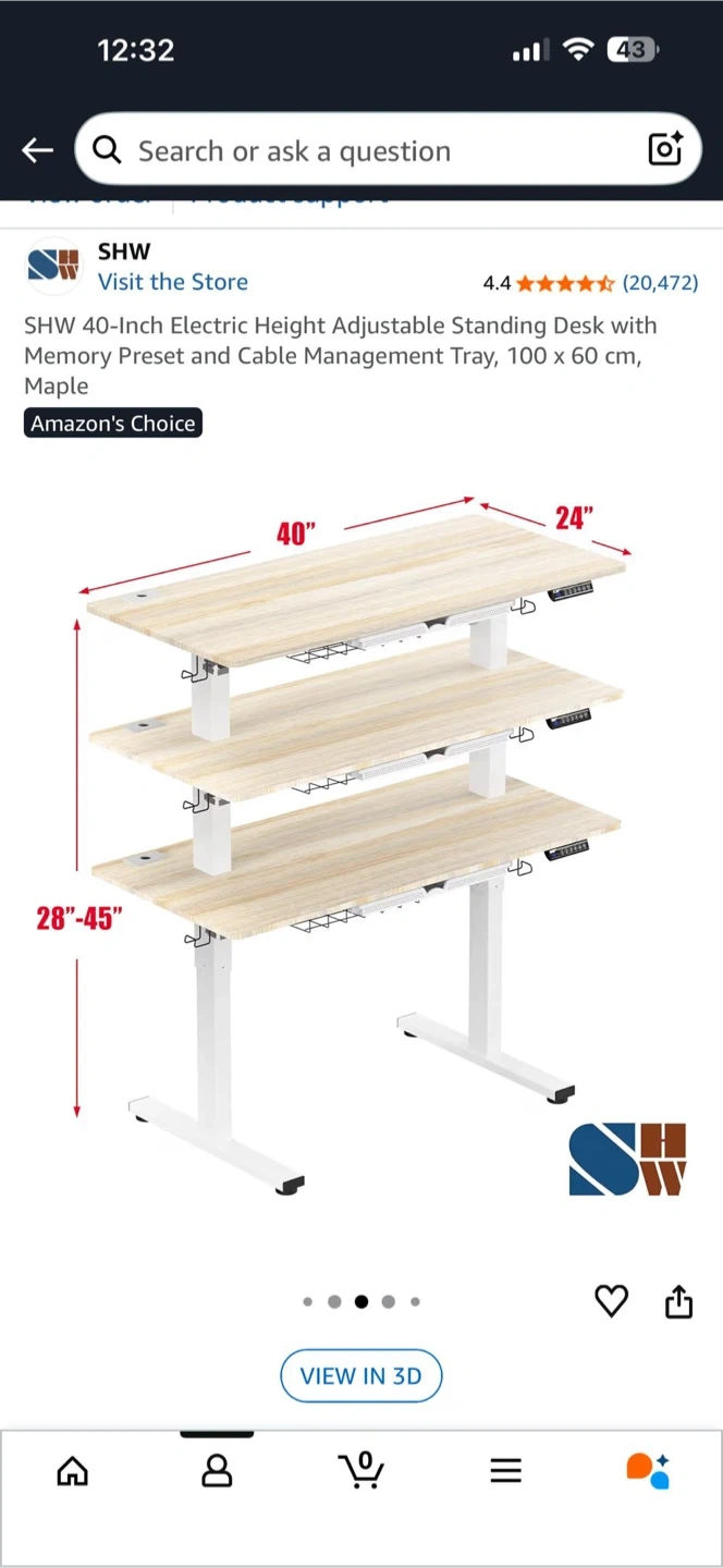 Looking to sell my 40-inch electric height adjustable standing desk. It comes with a memory preset and cable management tray. The desk dimensions are 100 x 60 cm and the top is maple. It can adjust from 28 to 45 inches!