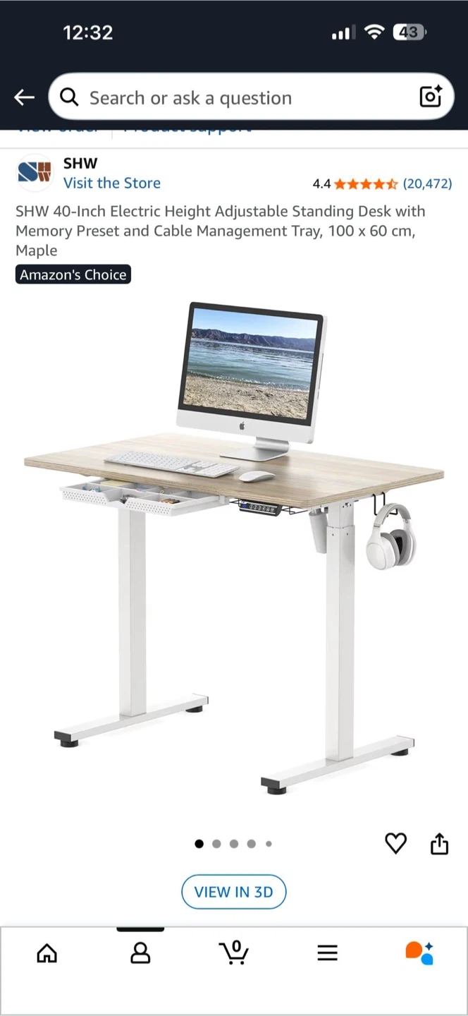 Looking to sell my 40-inch electric height adjustable standing desk. It comes with a memory preset and cable management tray. The desk dimensions are 100 x 60 cm and the top is maple. It can adjust from 28 to 45 inches!