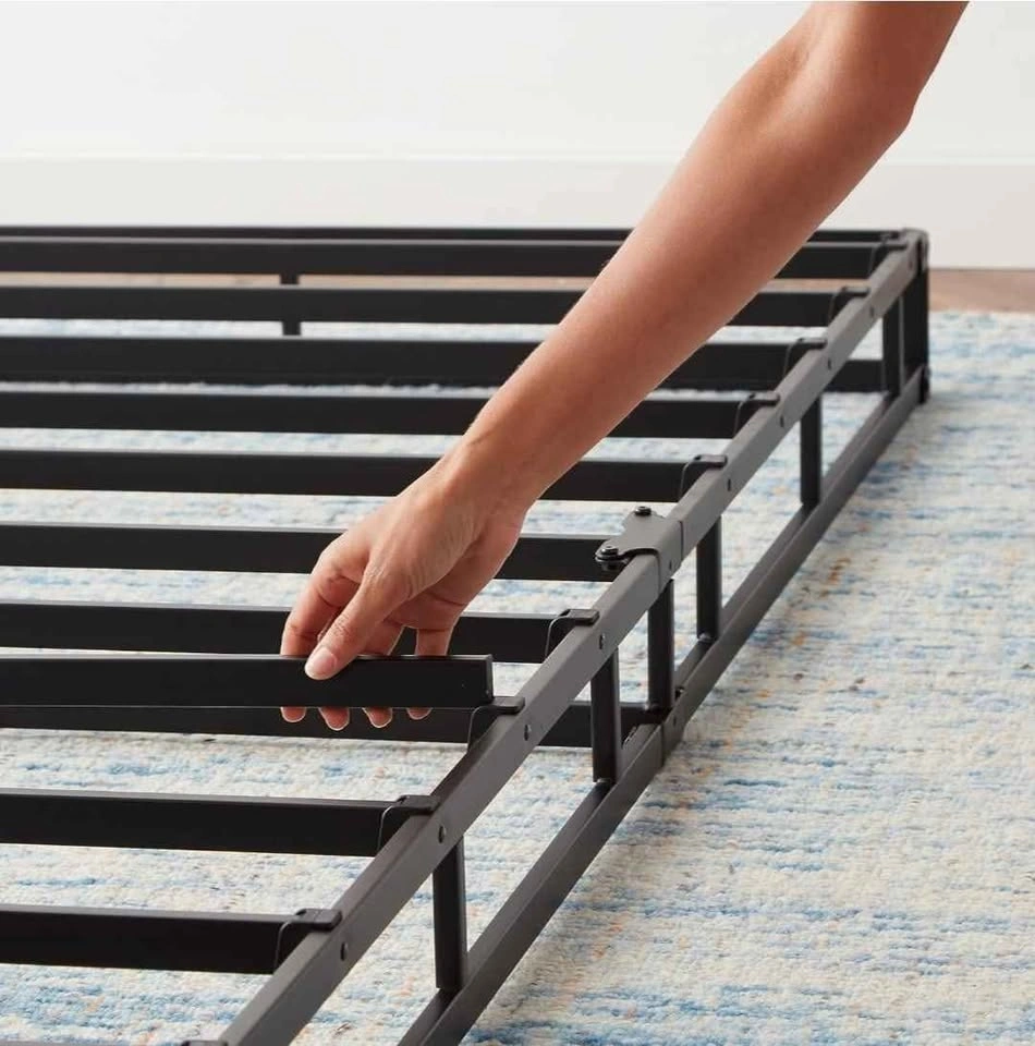 Twin-size (74" x 38" x 5") 5-inch low-profile mattress foundation. Durable steel frame, supportive slats, and easy tool-free assembly. Compatible with standard twin mattresses and ideal for low-height bed setups.