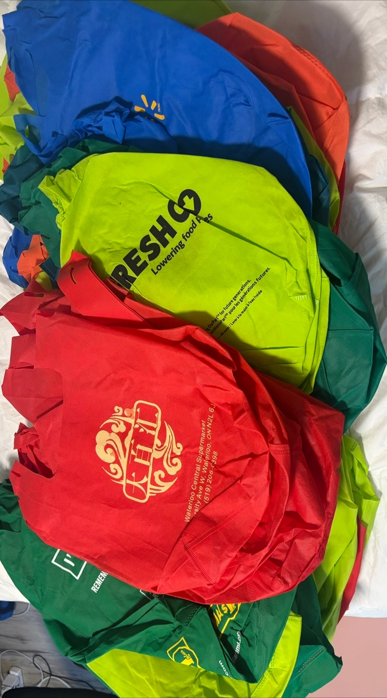 I'm offering a bundle of reusable shopping bags in various colours and from different stores. They're perfect for groceries, errands, or anything else you need to carry. Get a mix of styles and help reduce plastic waste!
