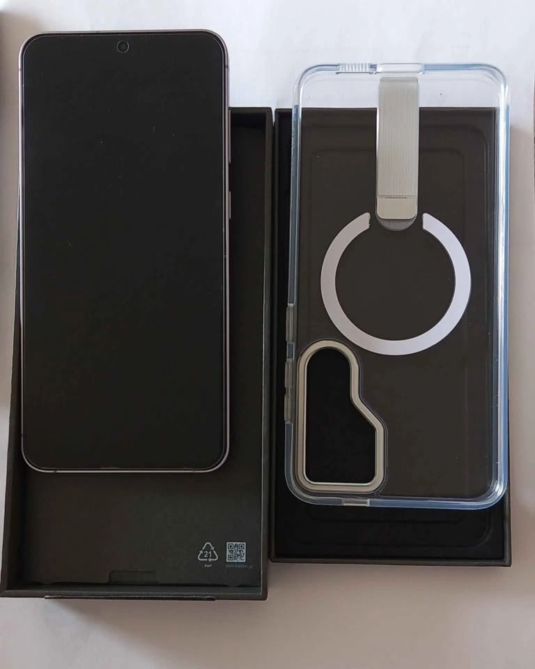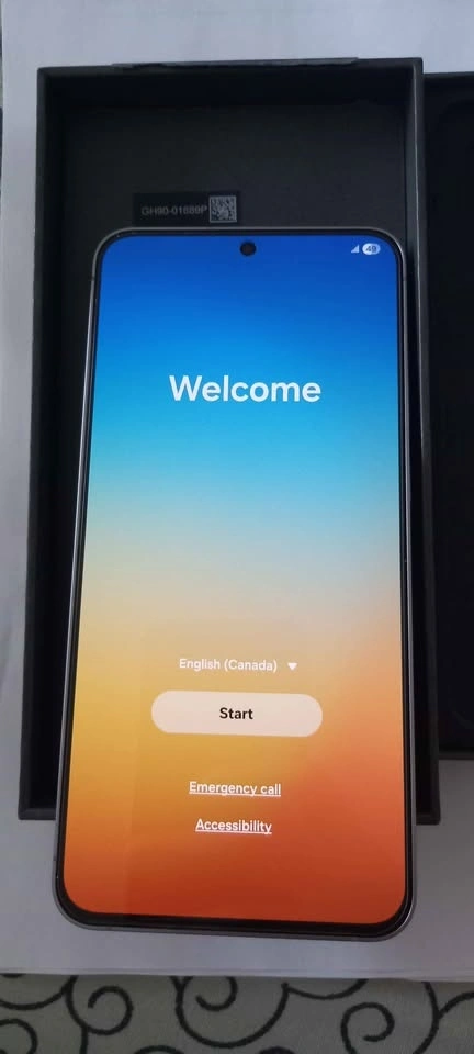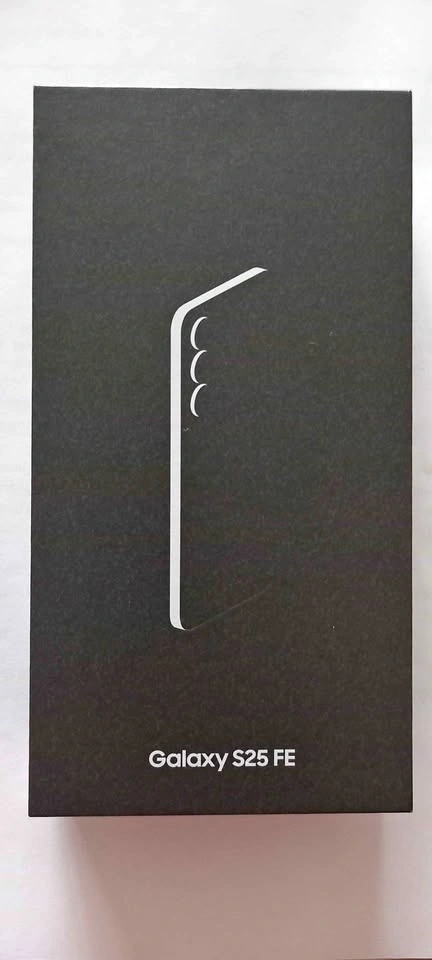Brand new Samsung Galaxy S25 FE, black color, with three camera lenses on the back. Still in original packaging. Unlocked.