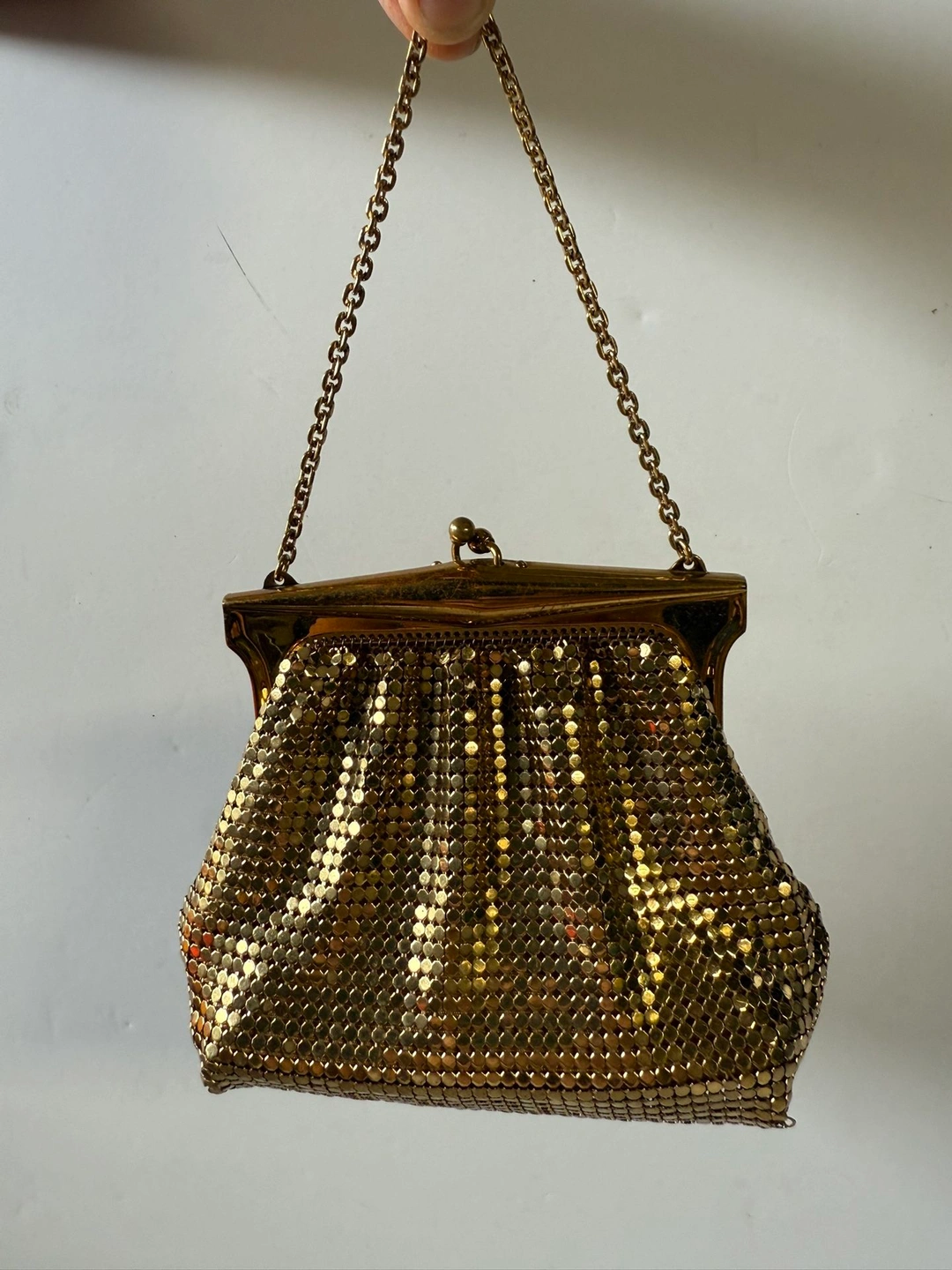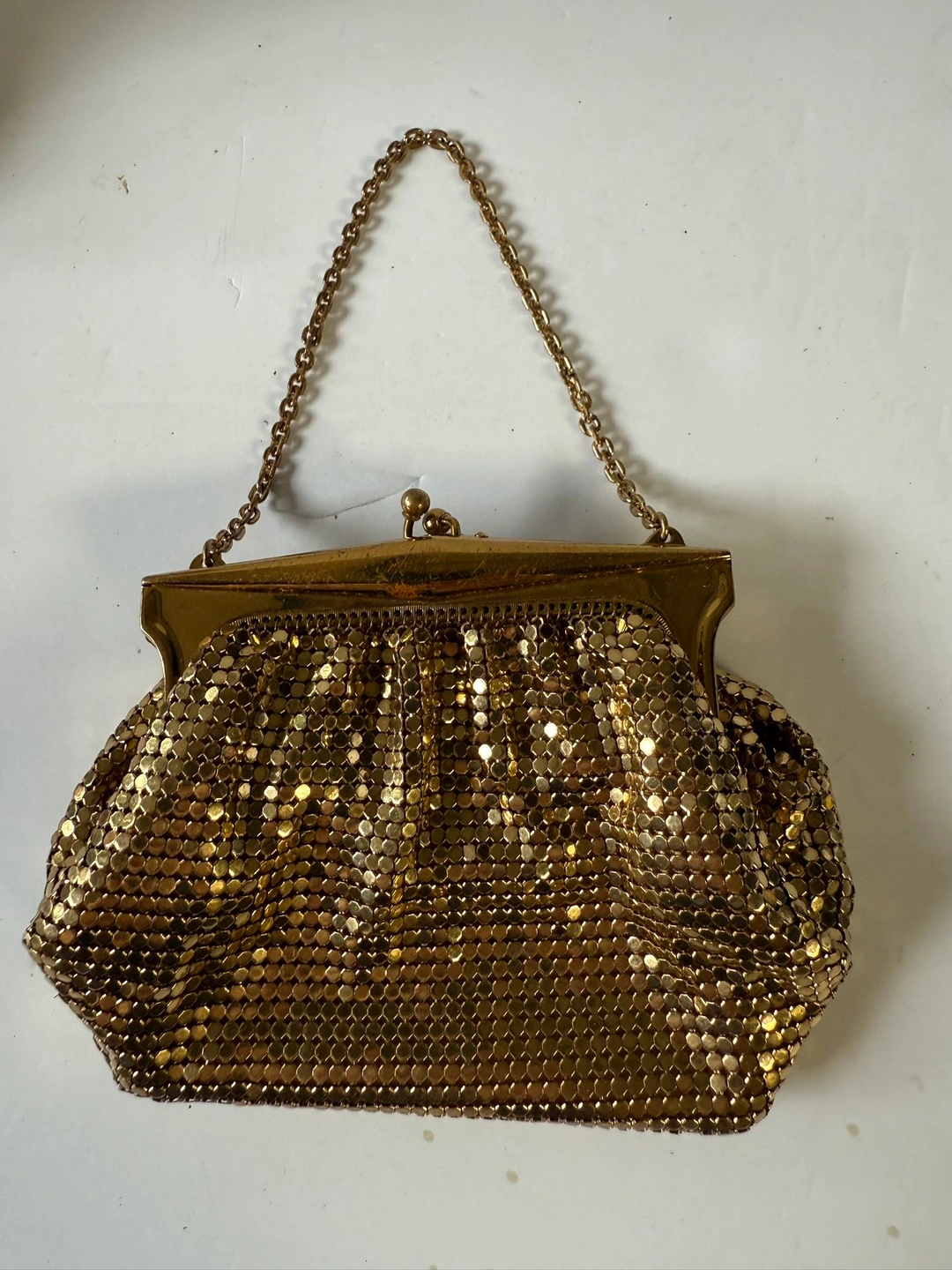 Vintage Whiting & Davis Gold-tone Mesh Kiss-lock Purse