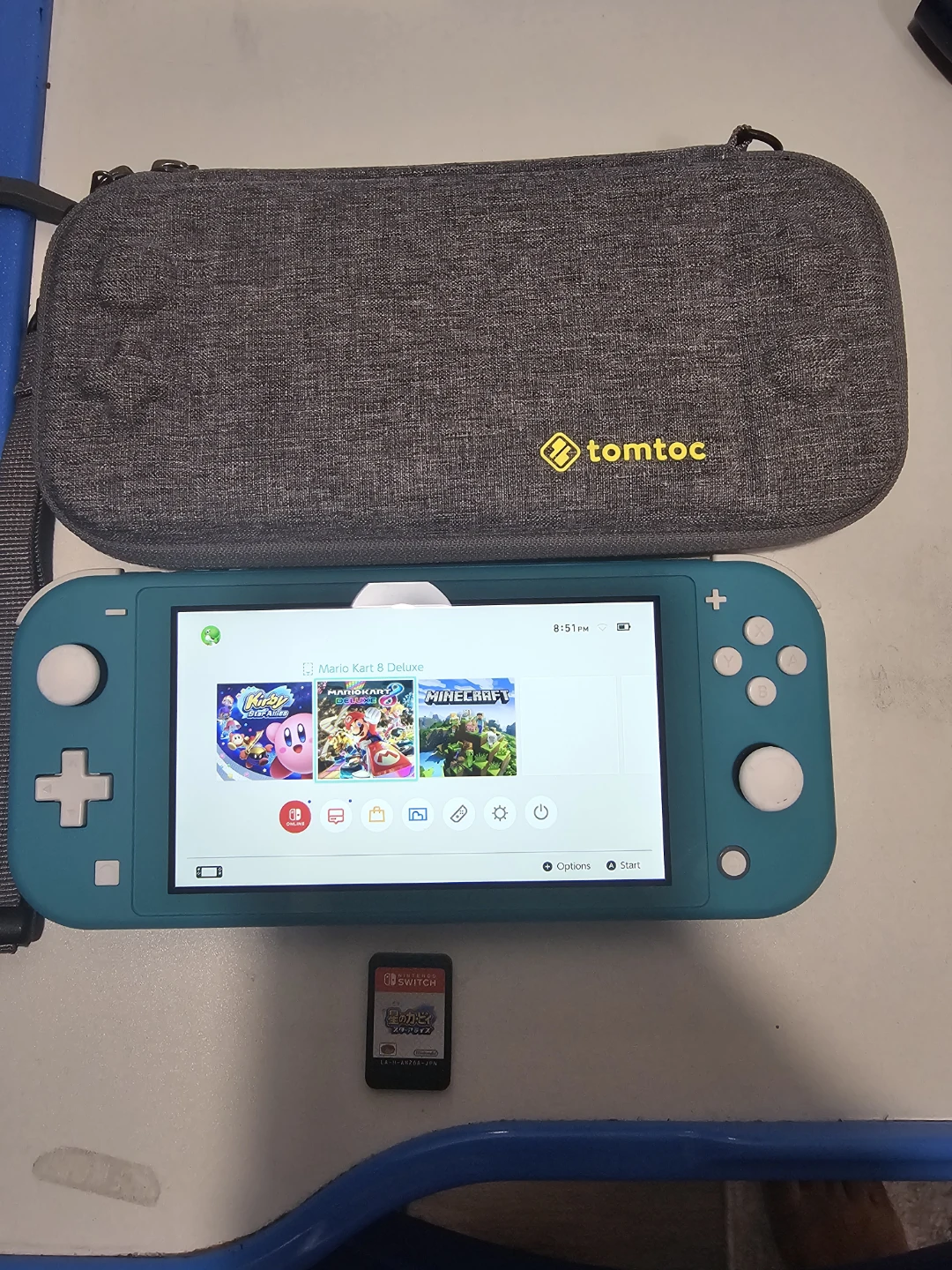 It comes with a Tomtoc carrying case and a copy of Kirby for the Nintendo Switch.