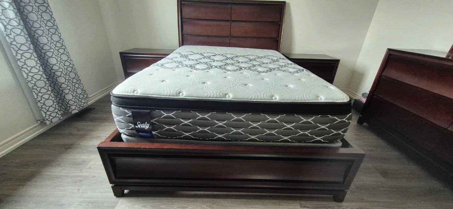 6 pieces bedroom set with Sealy Queen mattress and box spring. All almost new.