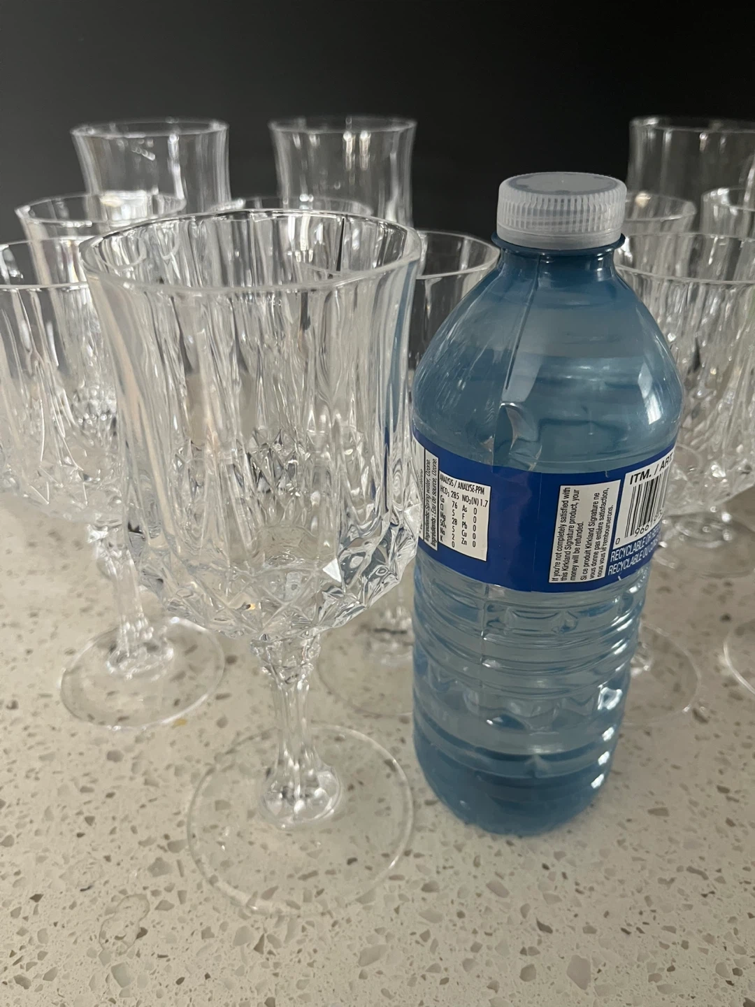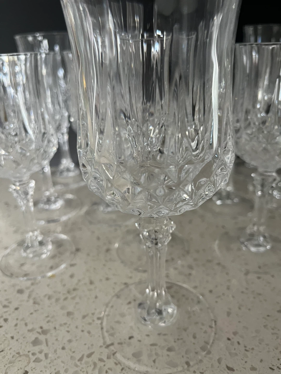 Beautiful set of 12 , 4 tall ones and 8 short ones crystal cut wine glasses. These glasses feature an elegant diamond pattern. Perfect for hosting or special occasions!