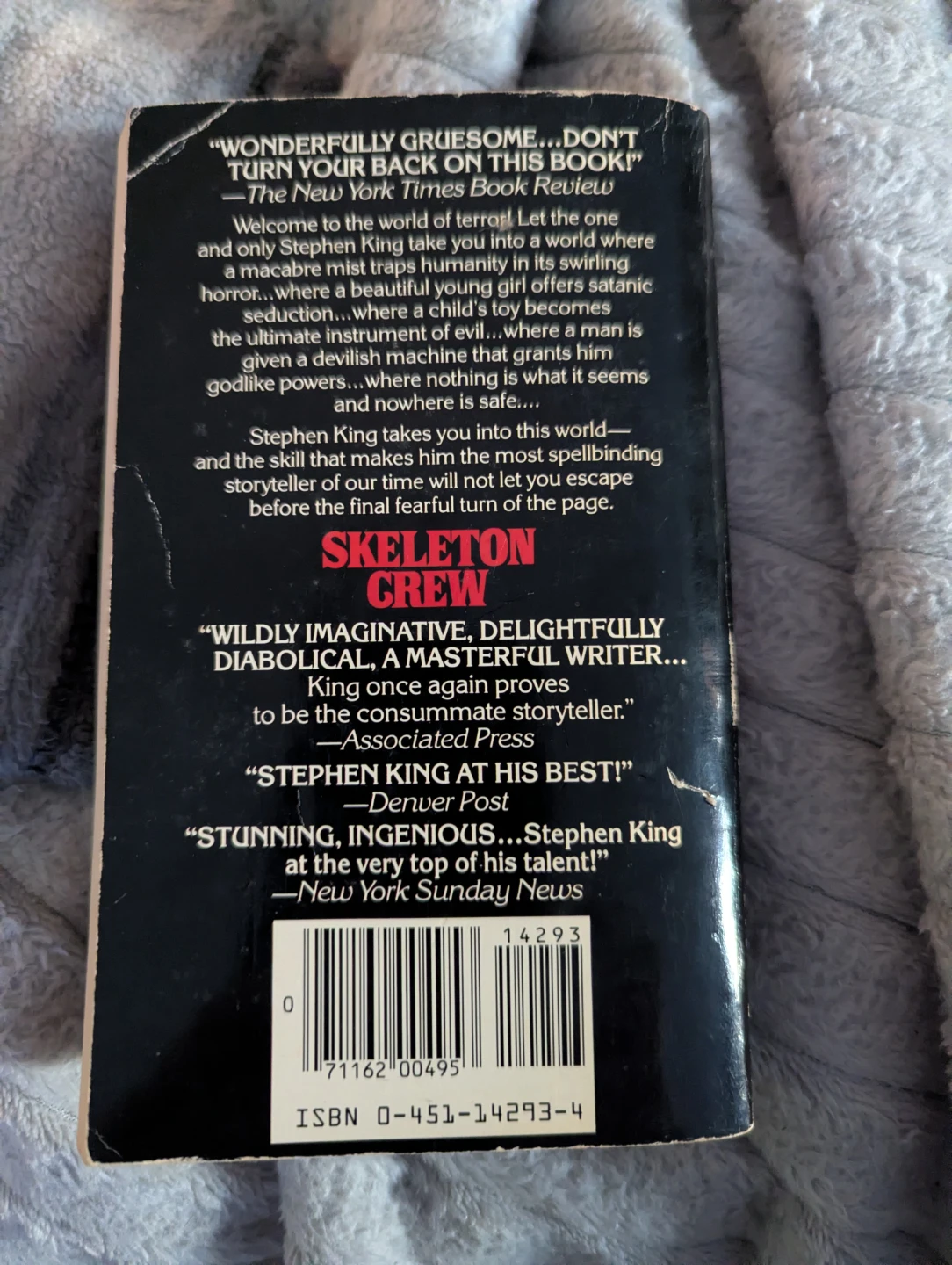 Stephen King's Skeleton Crew is a collection of short stories and novellas. It includes tales of horror, the supernatural, and suspense. This book features stories like The Mist and The Jaunt.