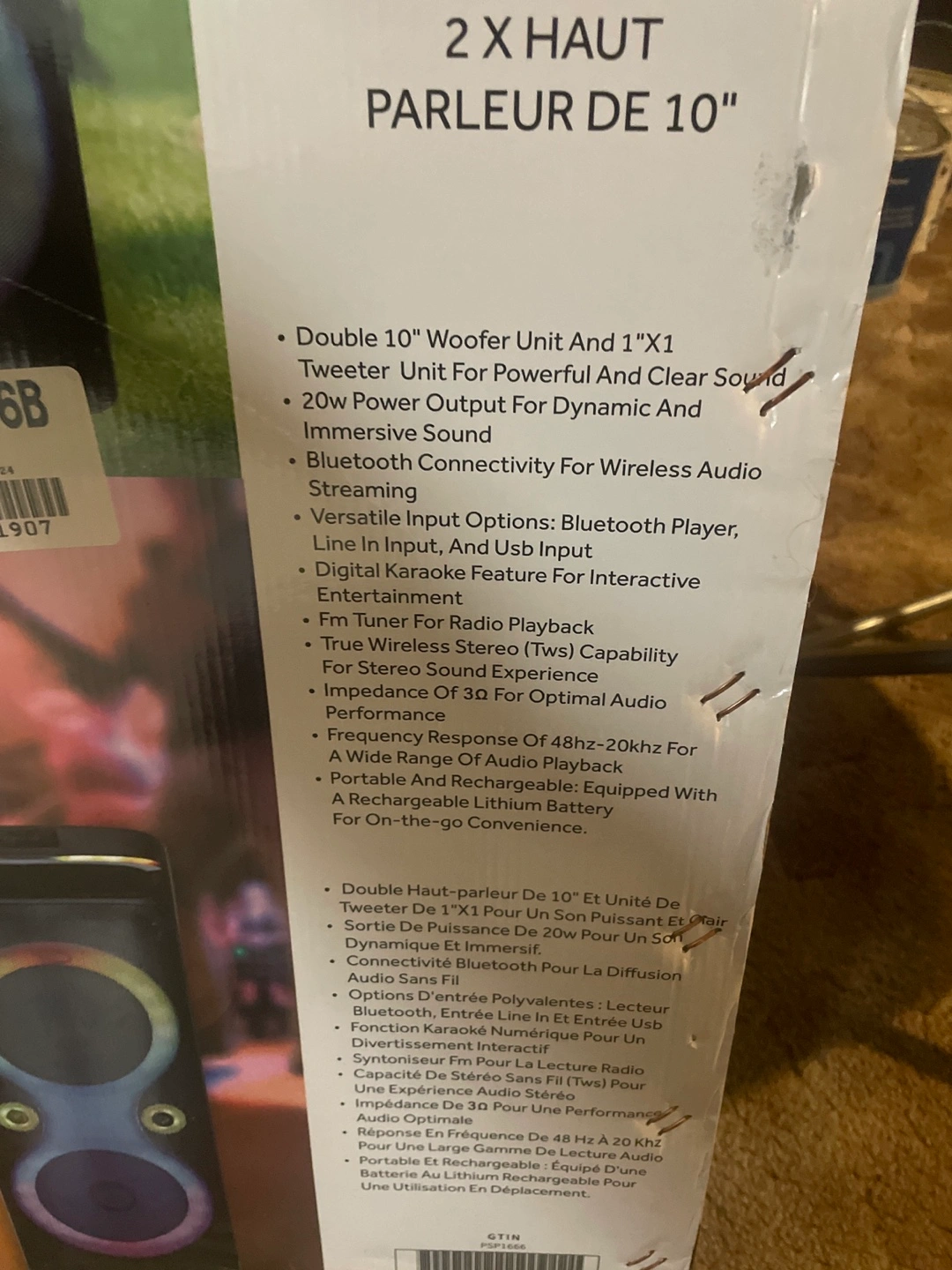 New in box. Portable Bluetooth speaker. Features two 10-inch woofers. LED light show. Great for parties.
